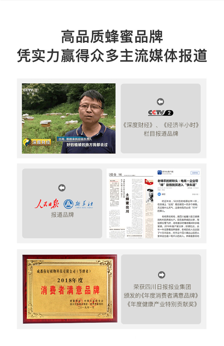 保存方式及时效:成熟蜂蜜可常温保存。为保存营养,建议冷藏保存。