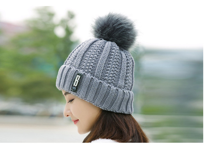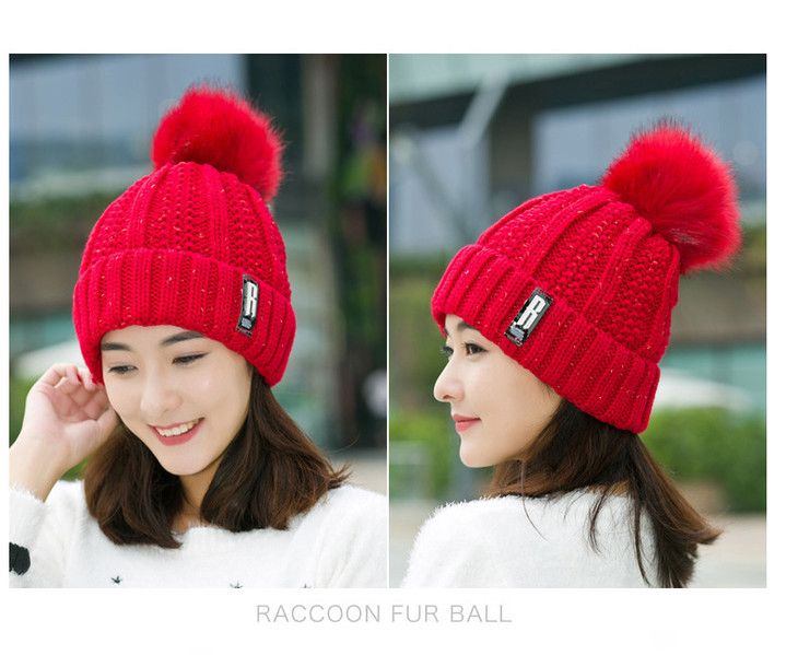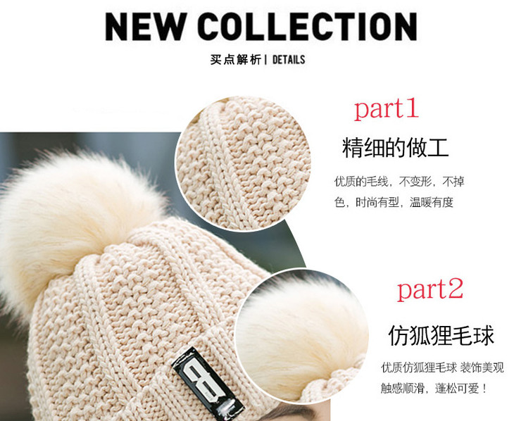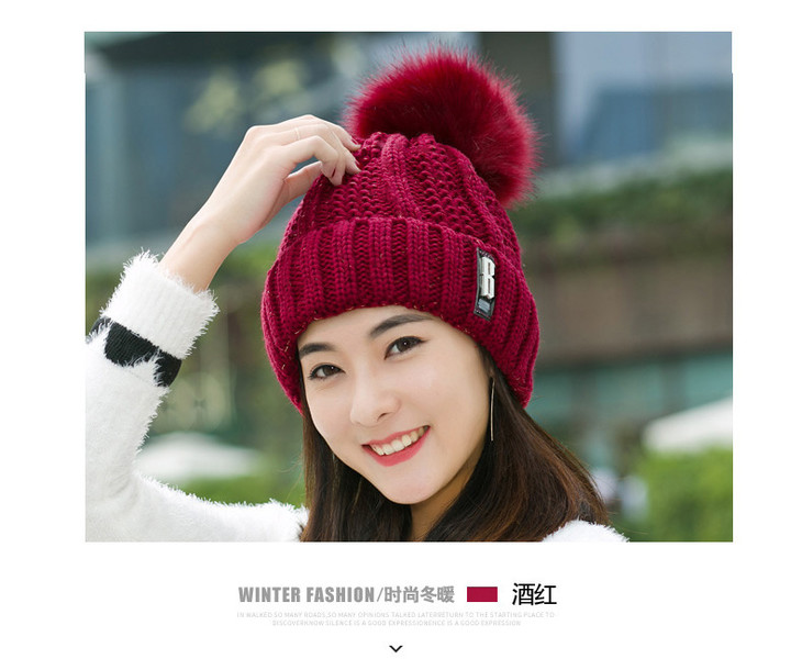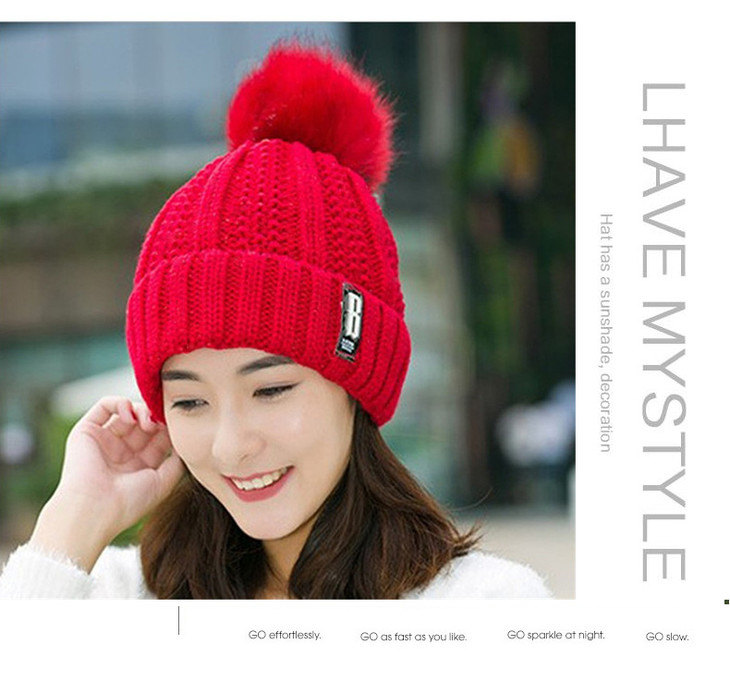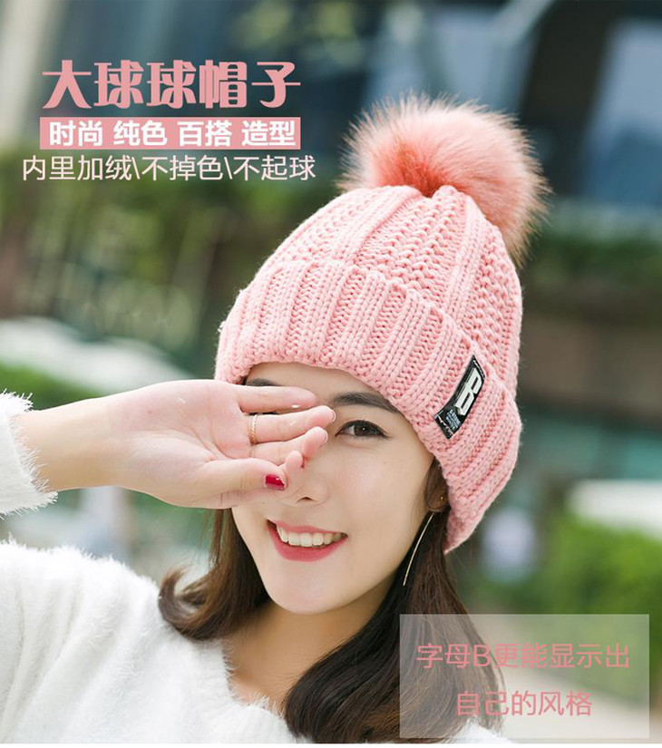 【韩版时尚毛球帽】冬季潮ins时尚百搭毛球帽加厚护耳骑车保暖针织帽