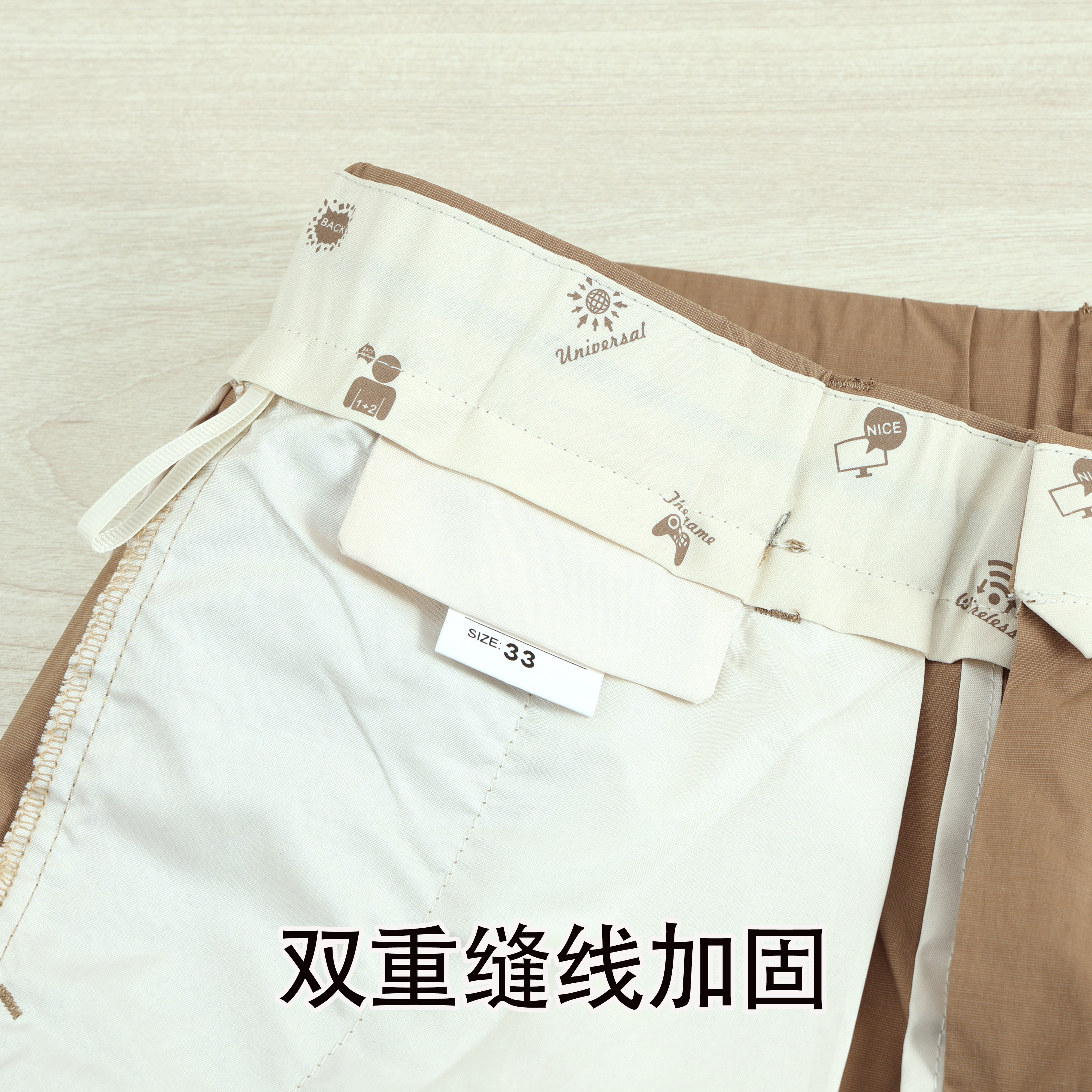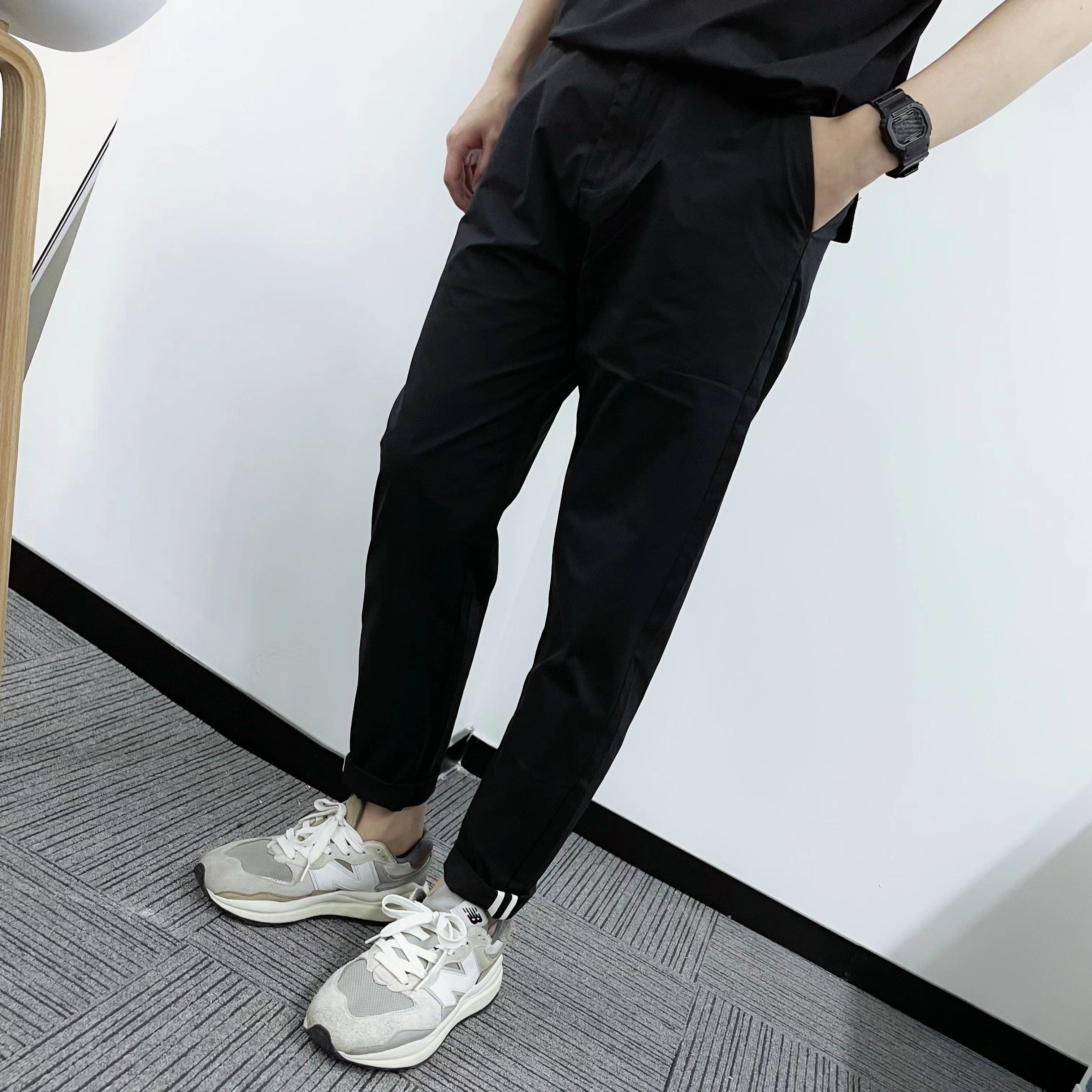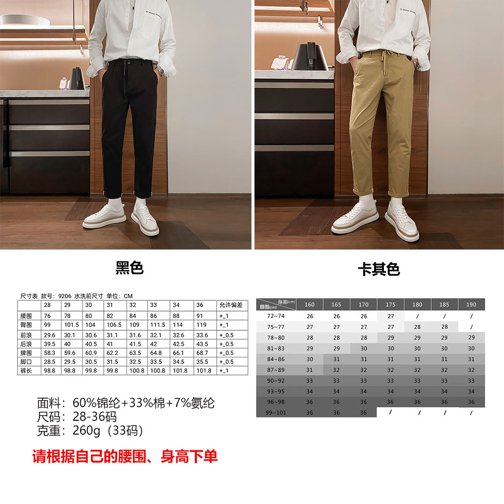 聪明在于--------面料聪明4面微弹 面料包容各种身材自带凉感,夏天舒适不闷60%锦纶+33%棉+7%氨纶设计聪明✔可休闲可商务✔弹力腰围+抽绳,包容性强一条好的裤子,显身材比例,腿型好干净利落,强烈推荐给家里的男士颜色:黑色/卡其尺码:28-36码克重:260g(33码)细节完美讲究的一条万能包容的裤子