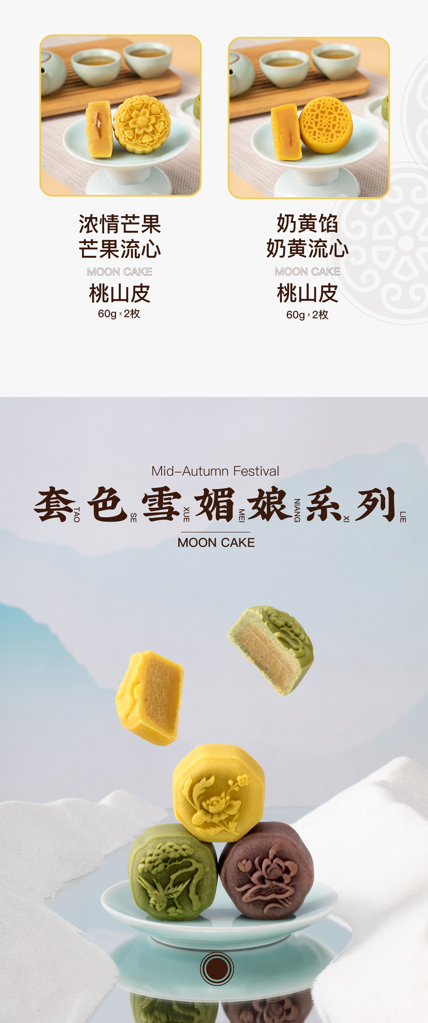 【中秋节月饼】桃山皮流心奶黄 广式五仁冰皮月饼 口味多种 满足您的味蕾
