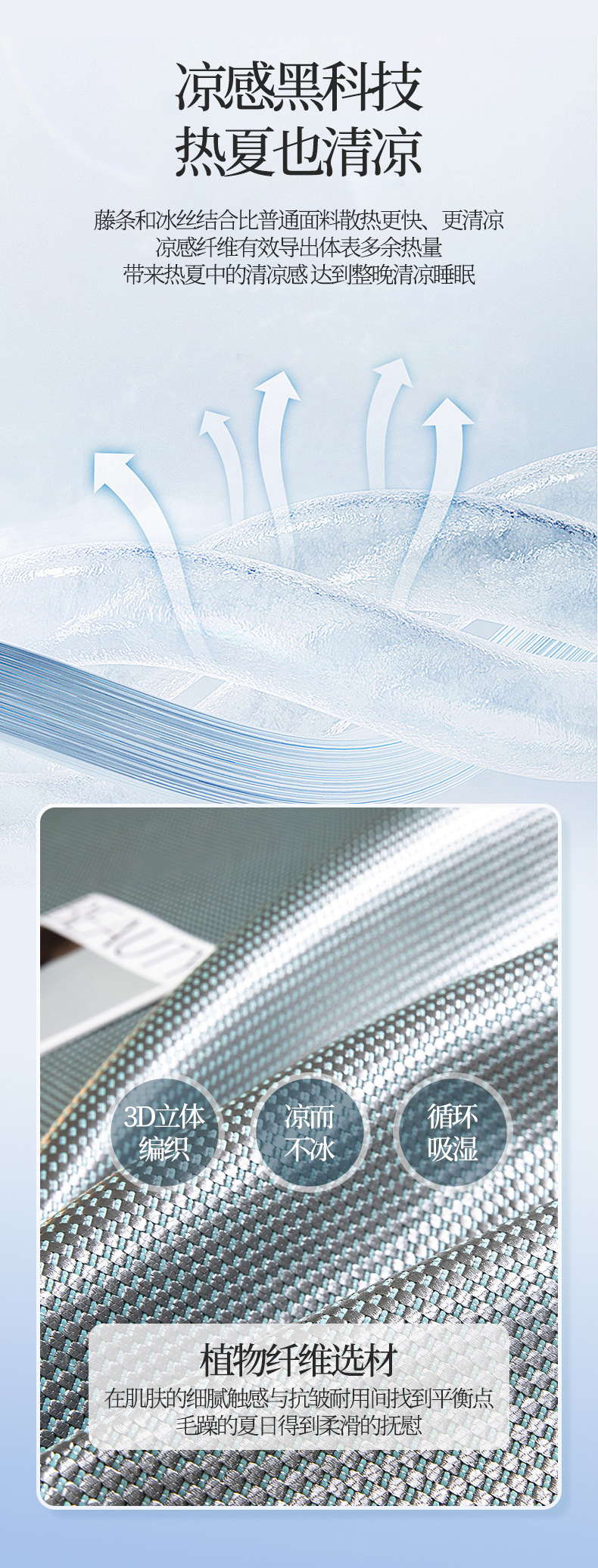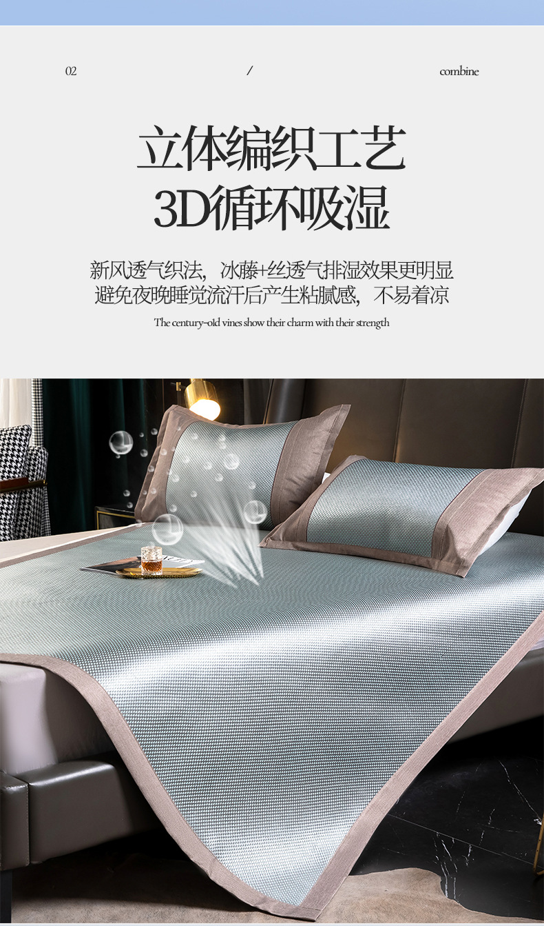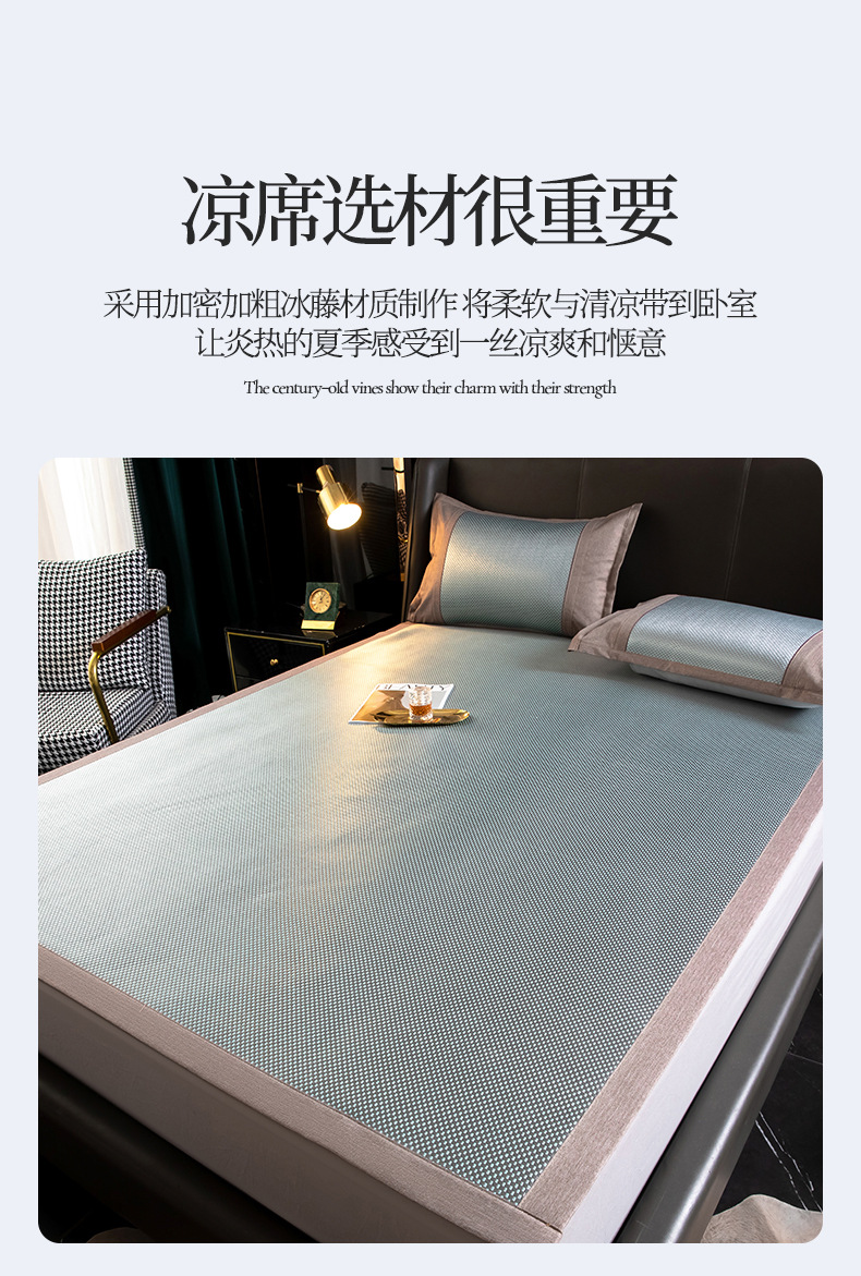 【26℃恒温的秘密!碳光藤席凉席三件套】高密度纺织凉而不冰,光滑细腻3D透气,方便收纳温凉享受,热夏也清凉,可折叠可机洗夏季冰丝席软凉席子粉丝专属家庭整理