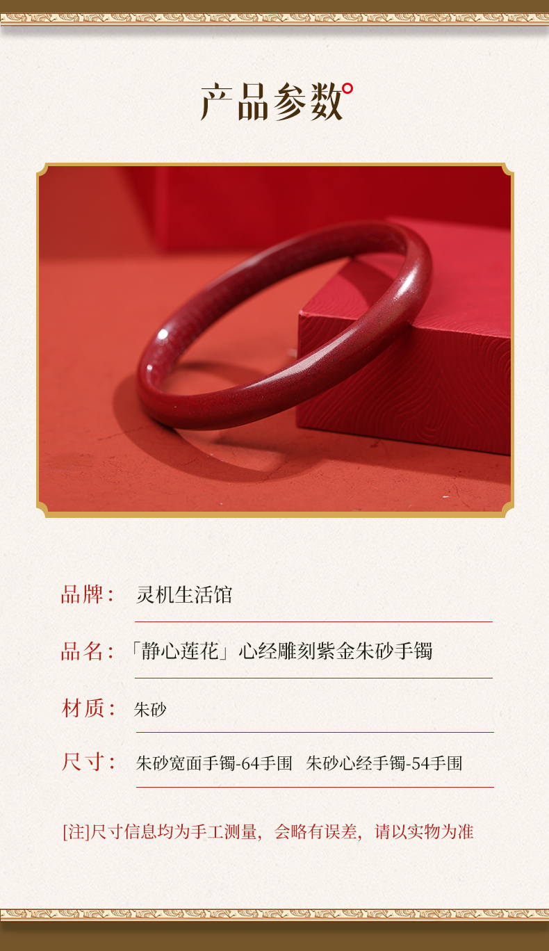 【祈愿吉品】「静心莲花」心经雕刻紫金朱砂手镯