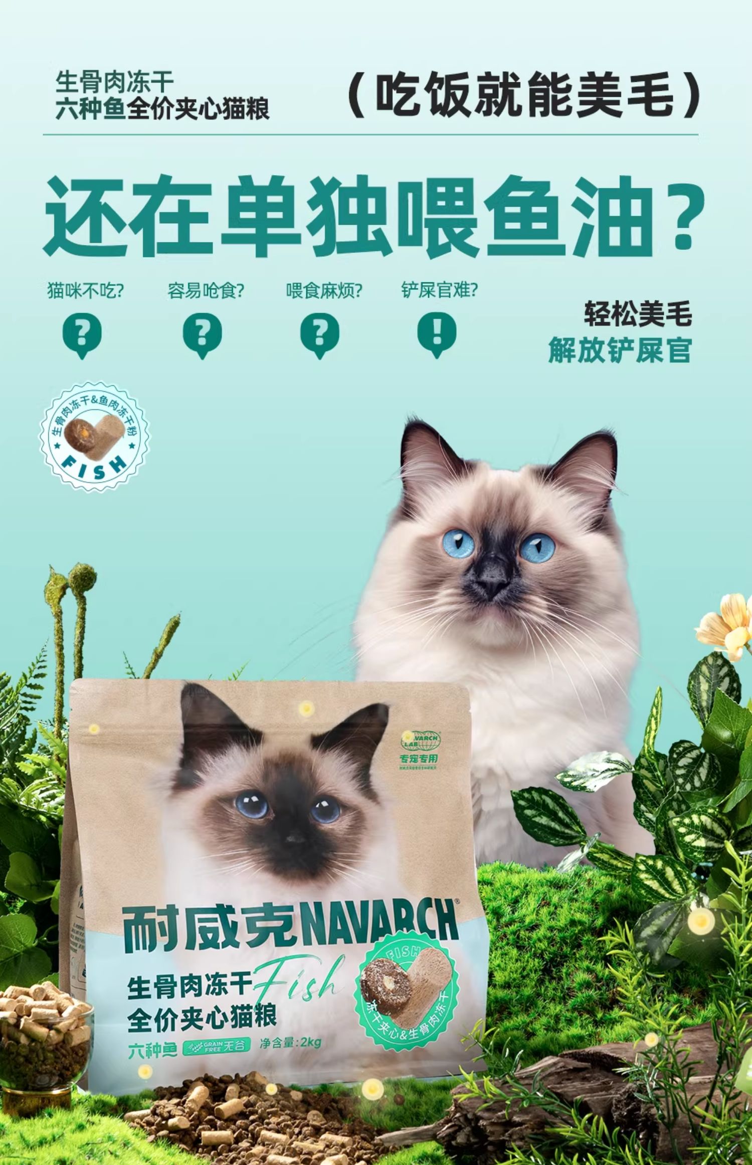 耐威克极鲜六种鱼冻干猫粮|少掉毛|美毛粮