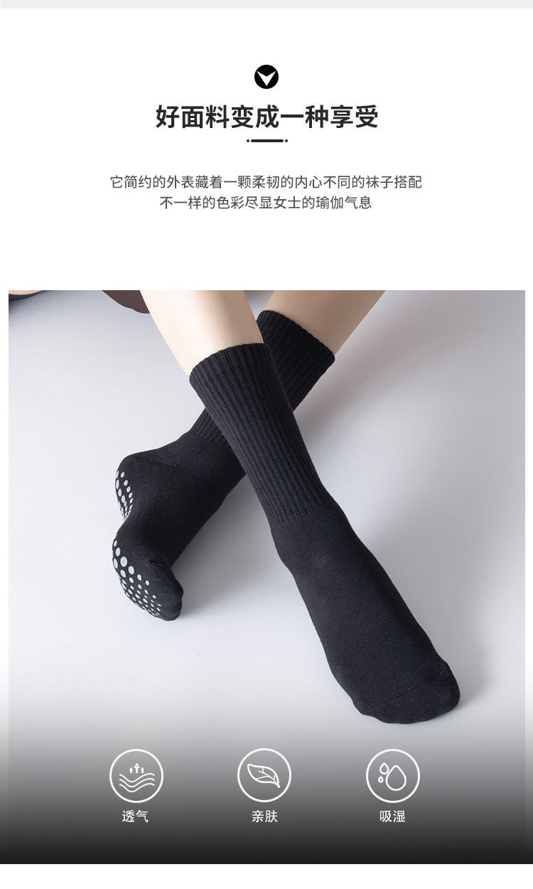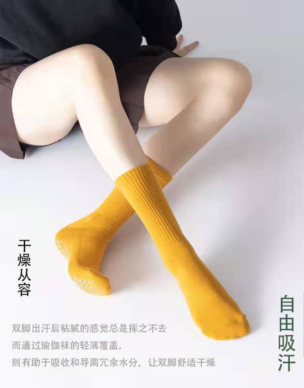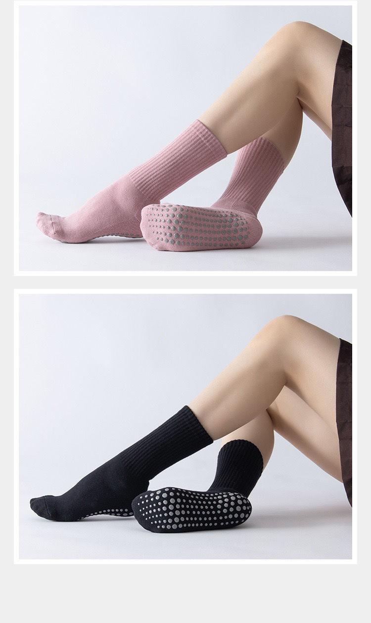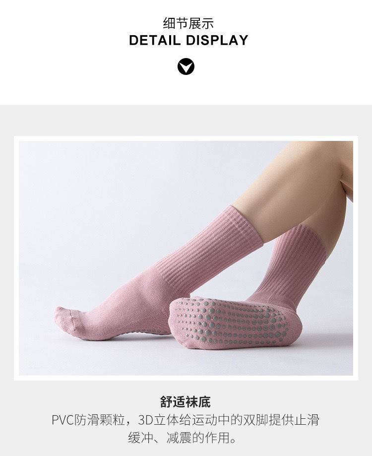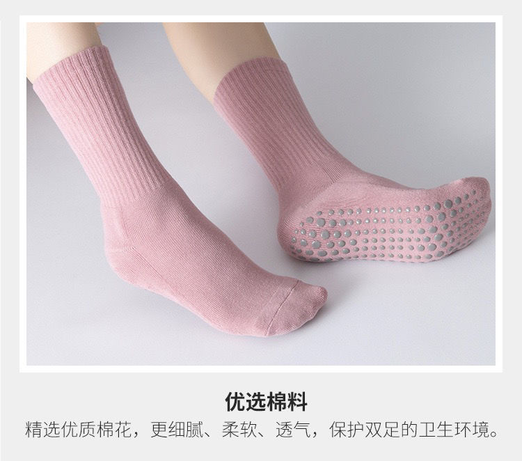 瑜伽袜子防滑中筒棉女毛圈室内健身袜蹦床普拉提初学者舞蹈春夏