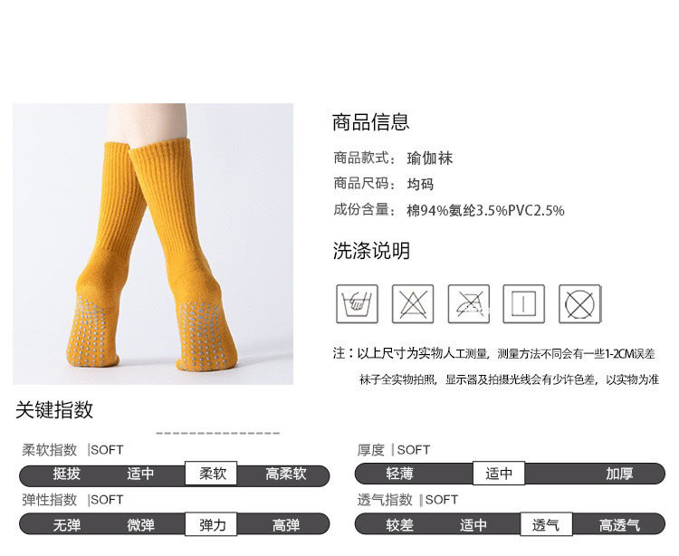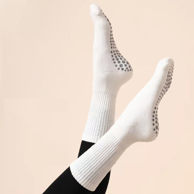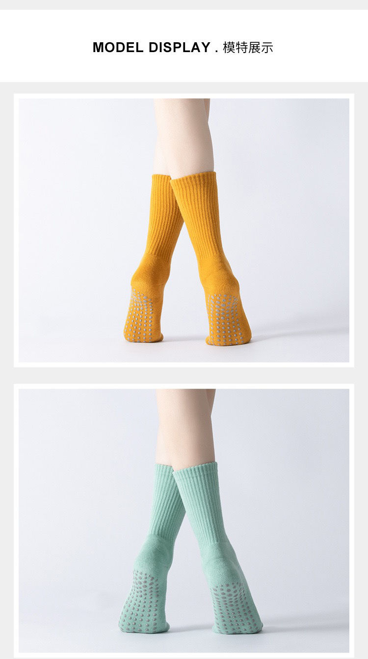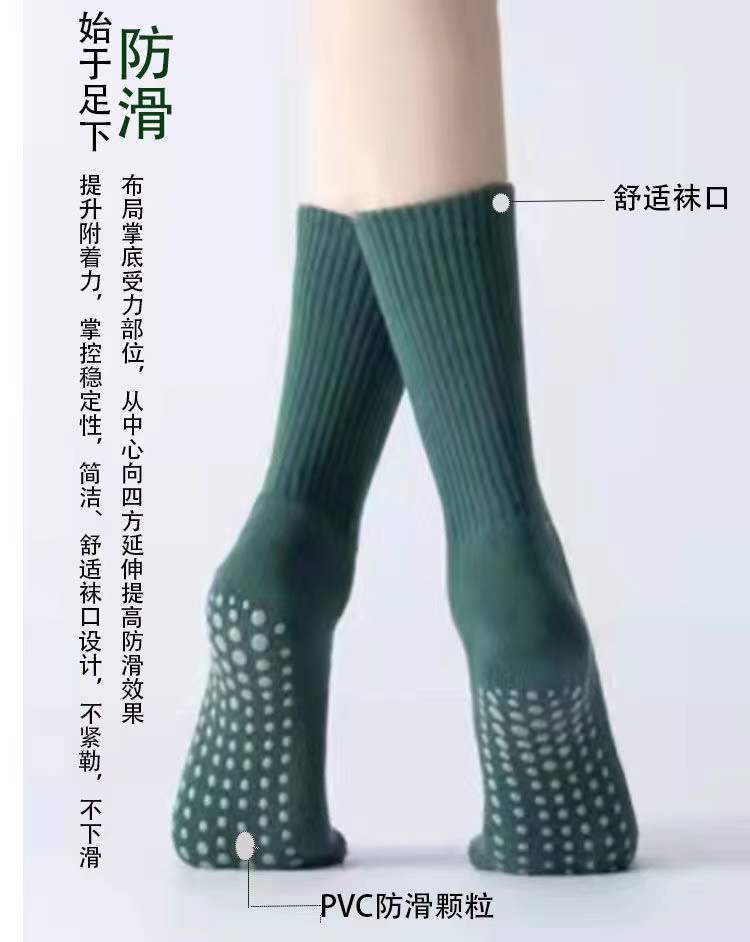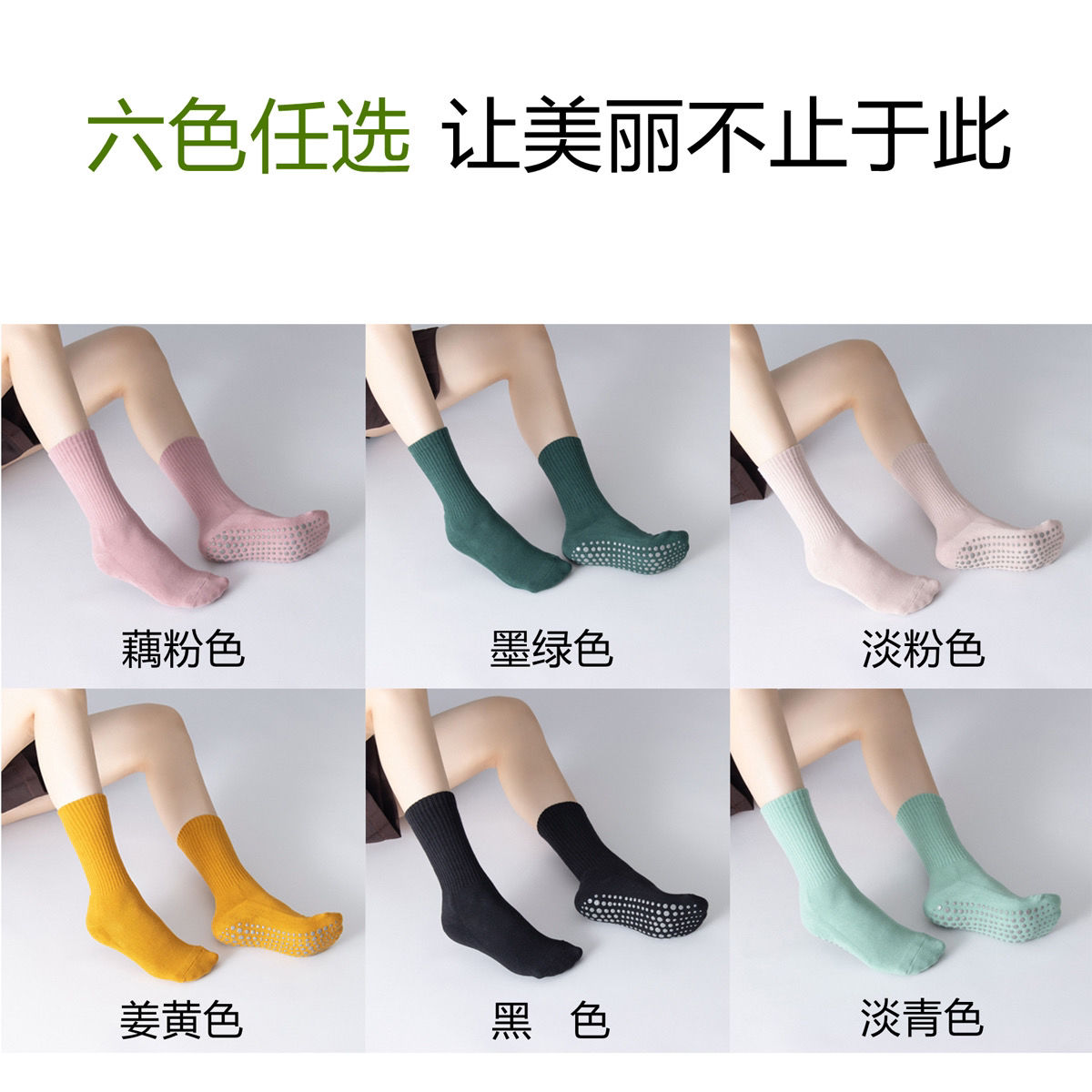 瑜伽袜子防滑中筒棉女毛圈室内健身袜蹦床普拉提初学者舞蹈春夏
