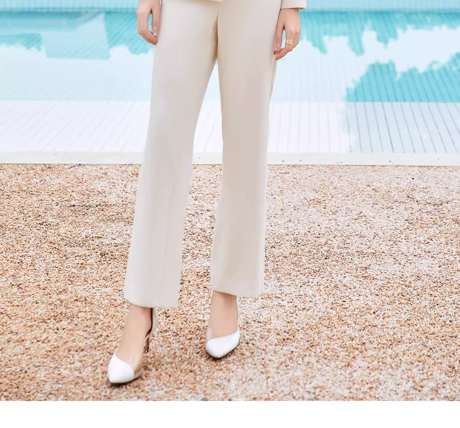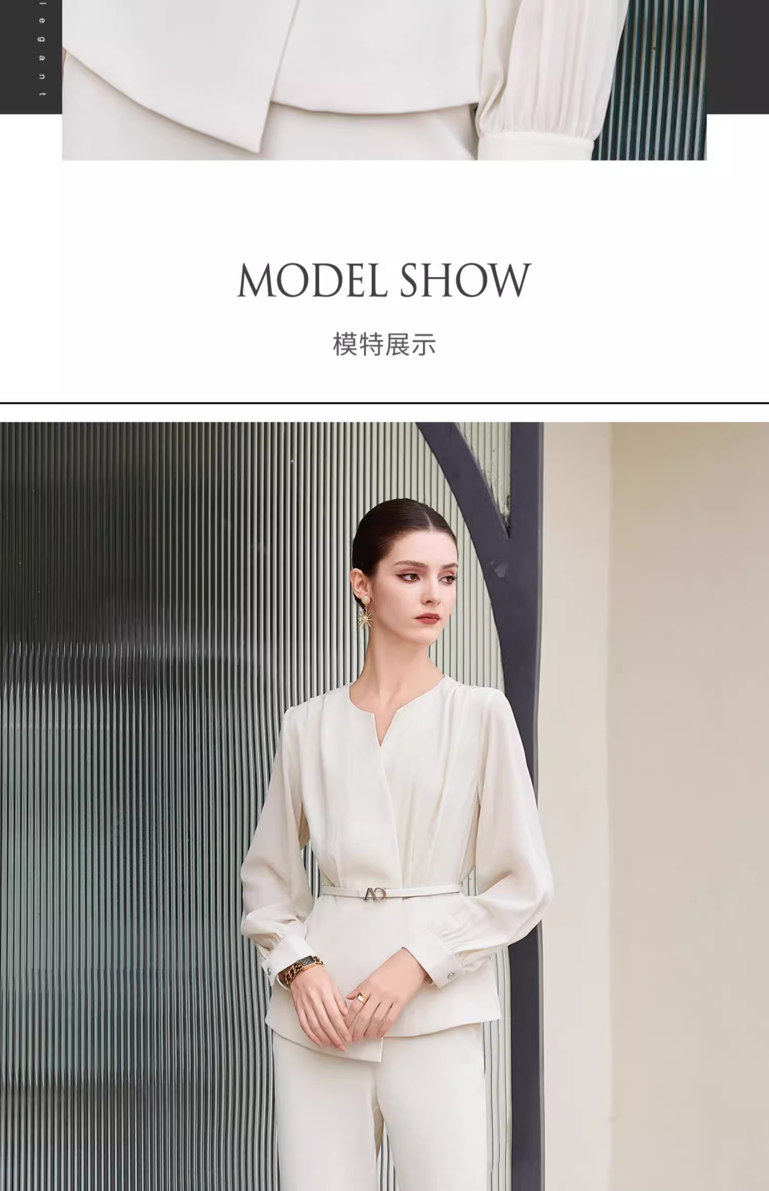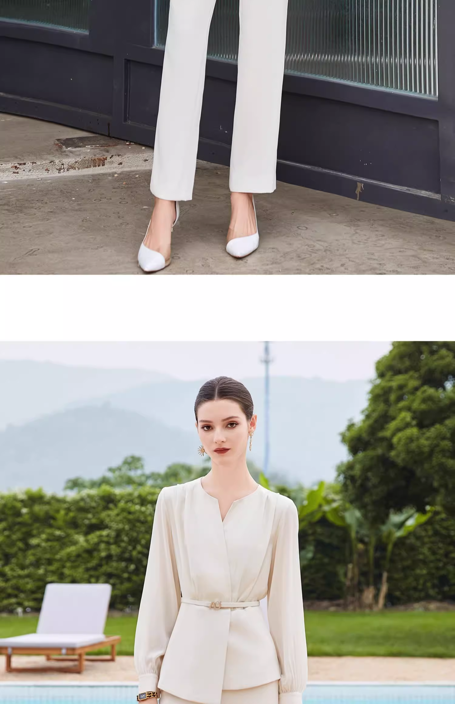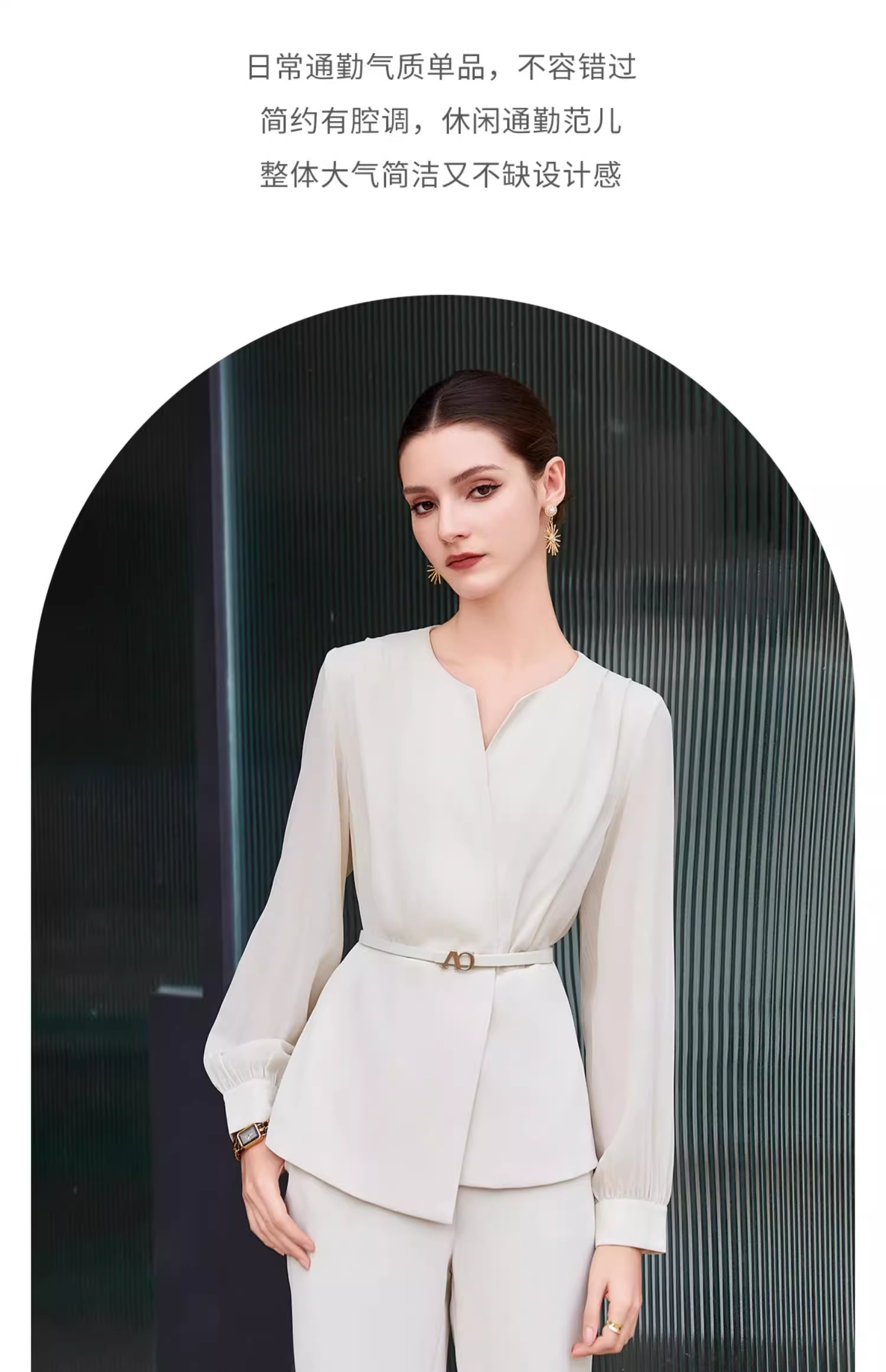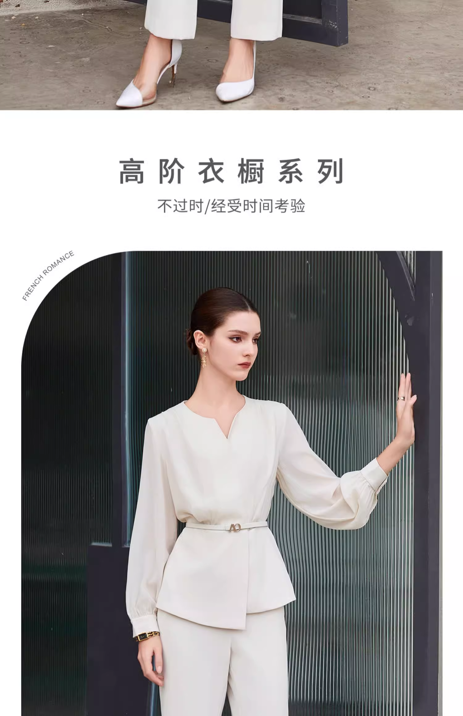 AD设计感小V领接拼雪纺衬衫上衣女高端职业两件套时尚阔腿裤套装