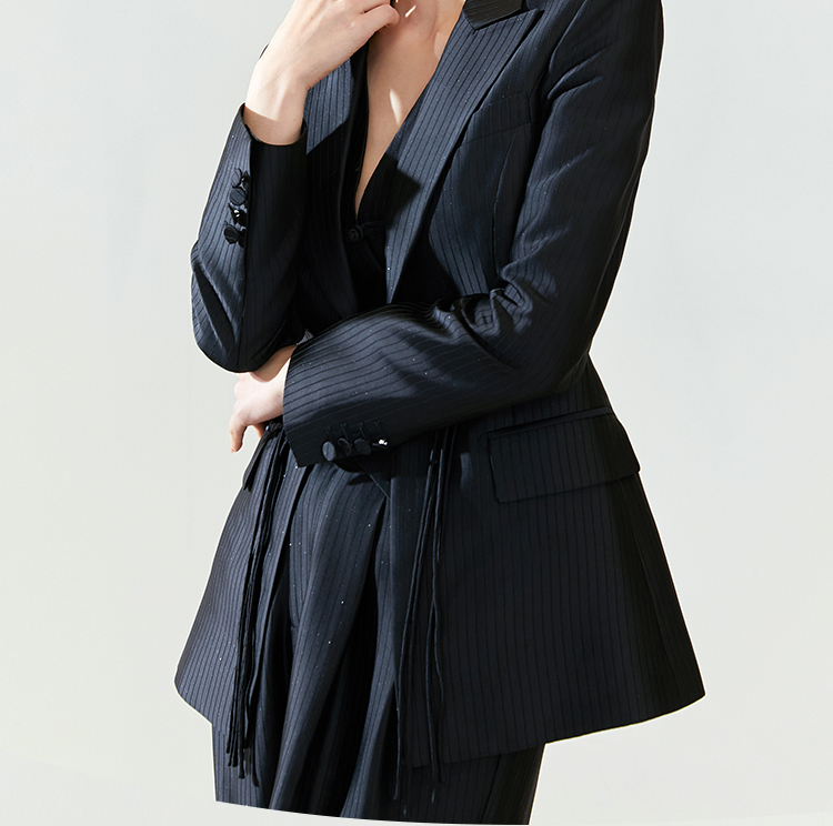 扶摇 高端西装外套女新中式盘扣黑色条纹西服套装气质职业装