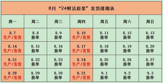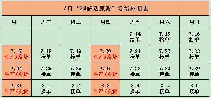 3、发货当天的订单截止时间为当日11:00,11:00之后的订单将在下一生产发货日发出;
