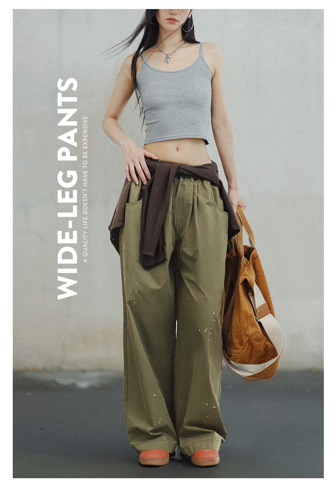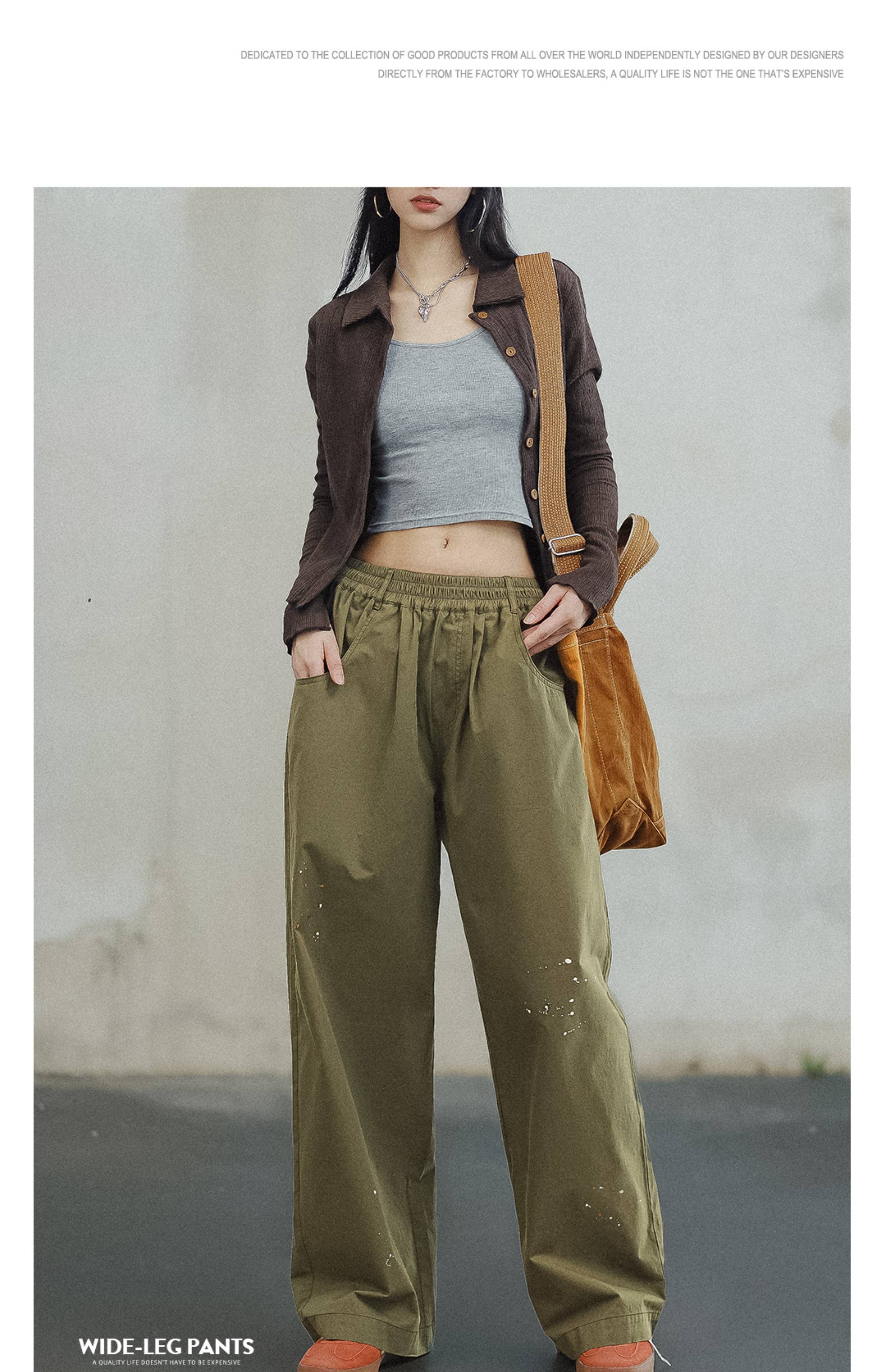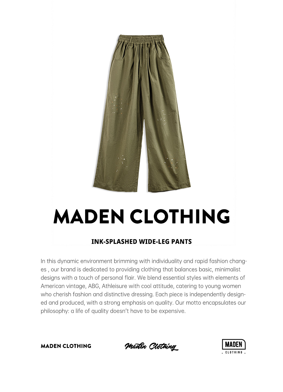 马登纯棉复古泼墨工装裤小众设计感直筒裤百搭松紧腰休闲裤夏季女