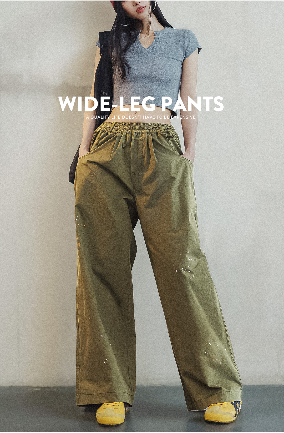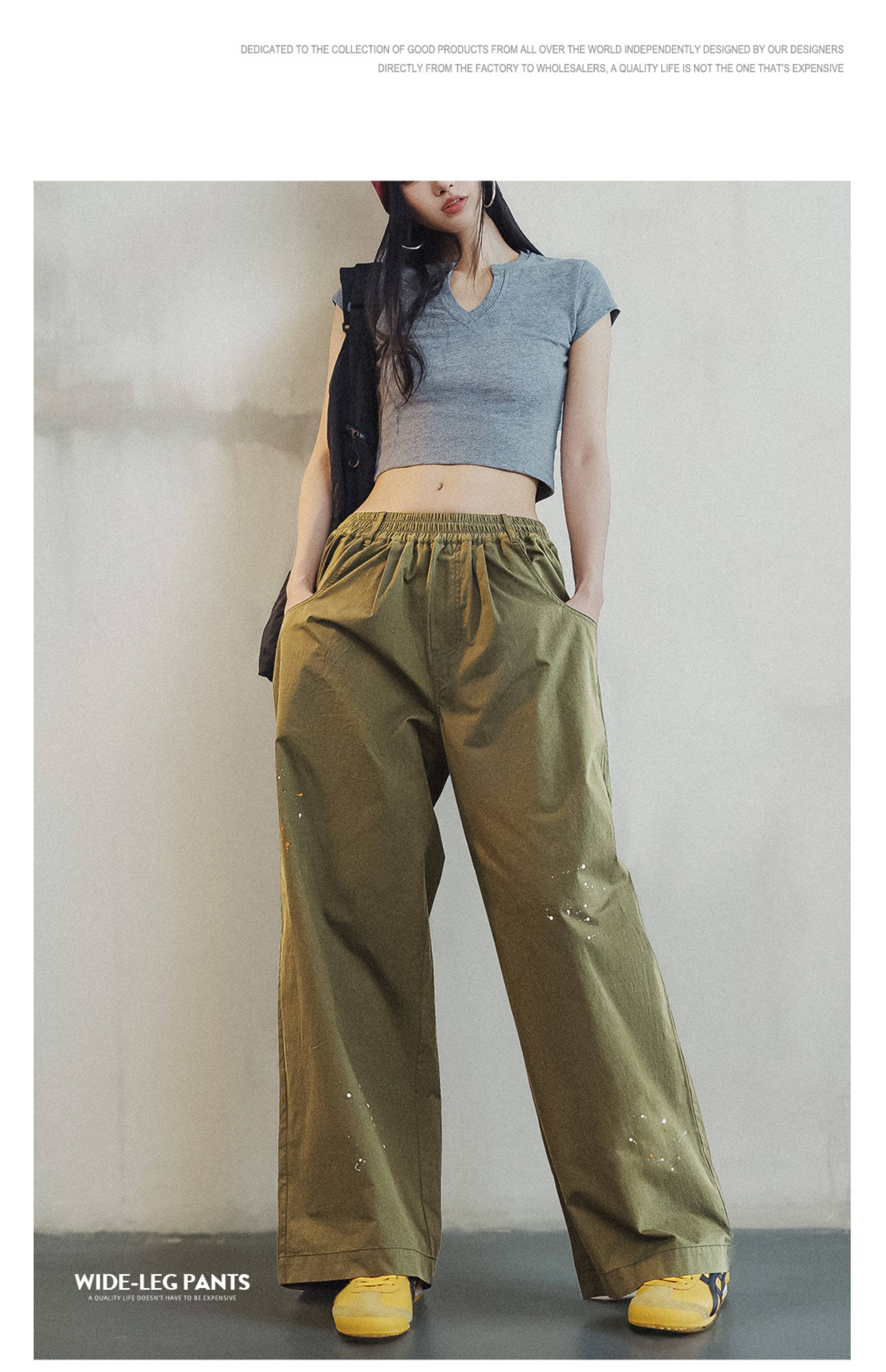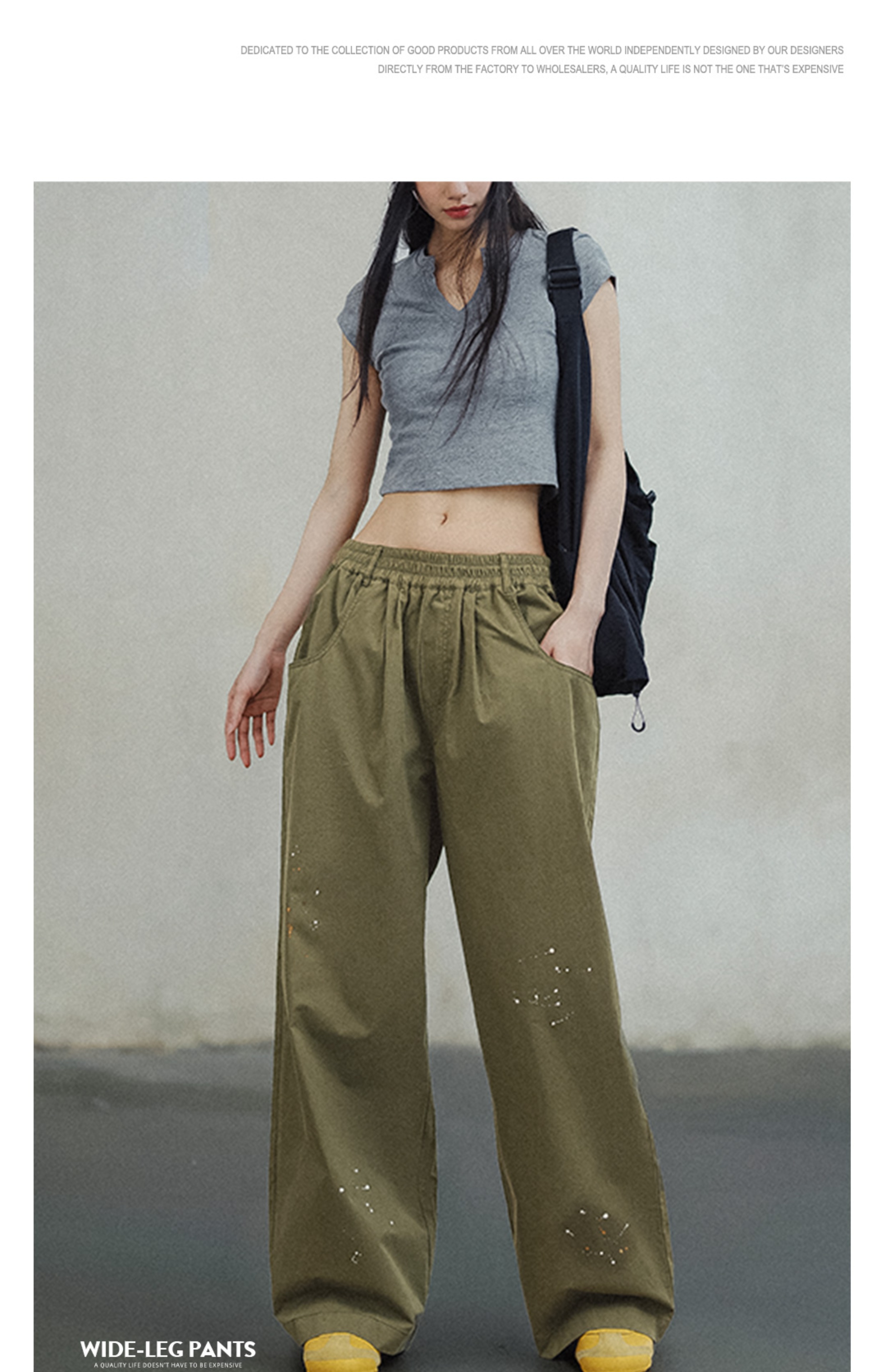 马登纯棉复古泼墨工装裤小众设计感直筒裤百搭松紧腰休闲裤夏季女