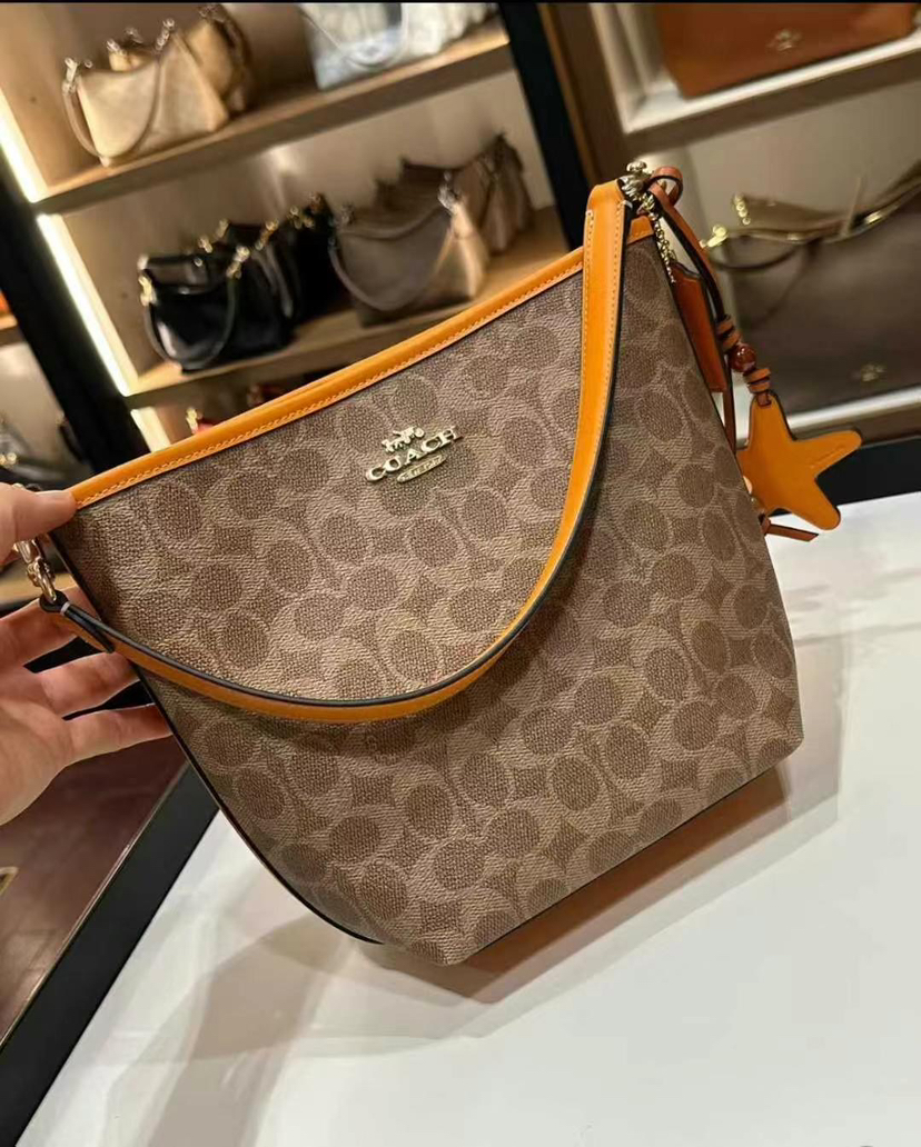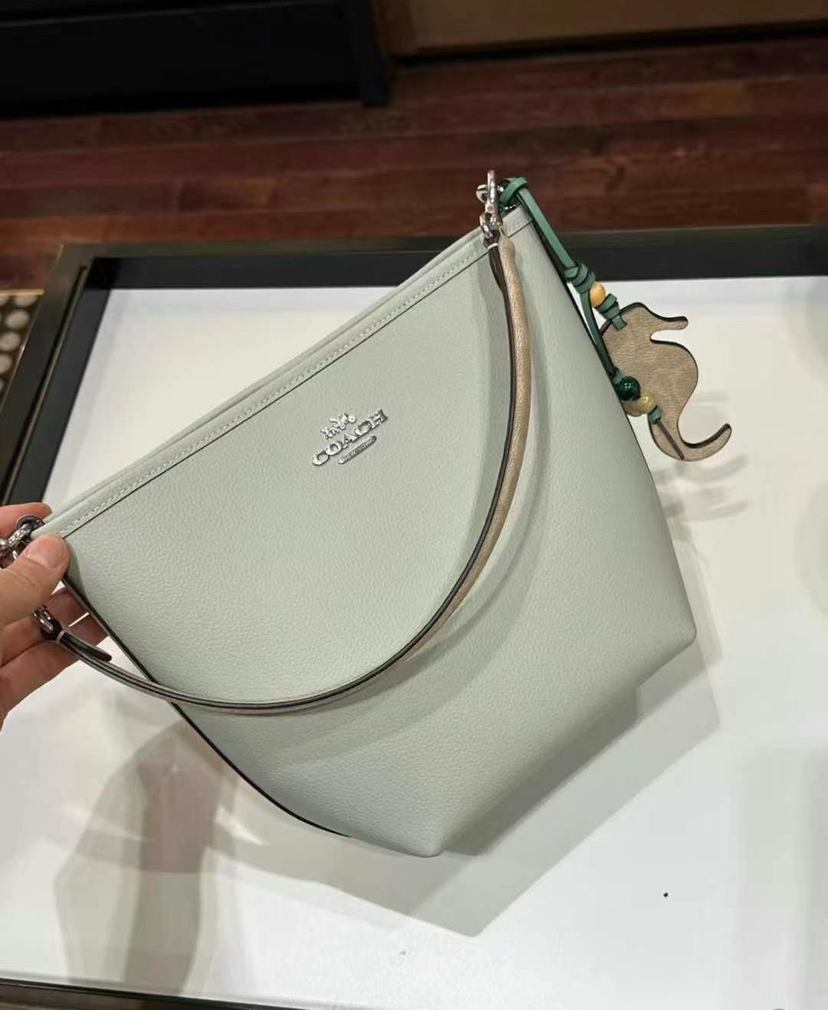 🧸新款上市,1199直邮到手✈️Coach 新款 city bucket 系列水桶包,赠送一枚小挂坠,精致又百搭,薄荷绿色/橘色logo,带有长款斜挎肩带,18×21cm