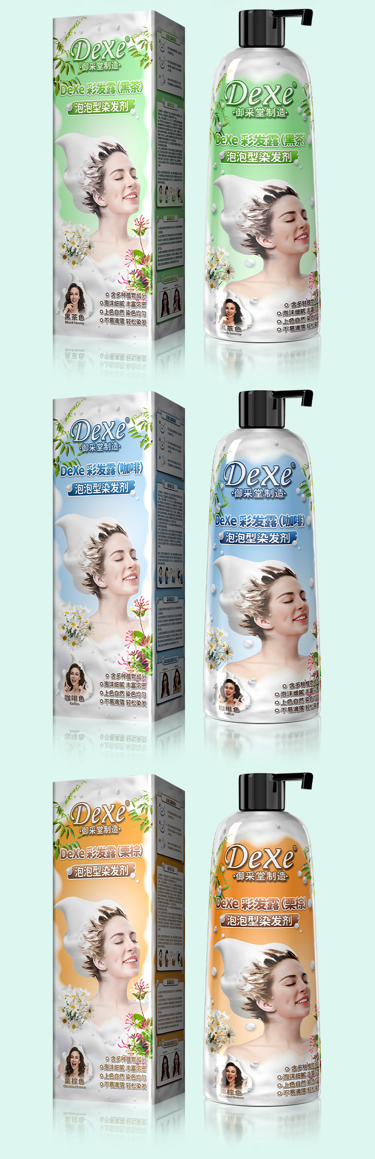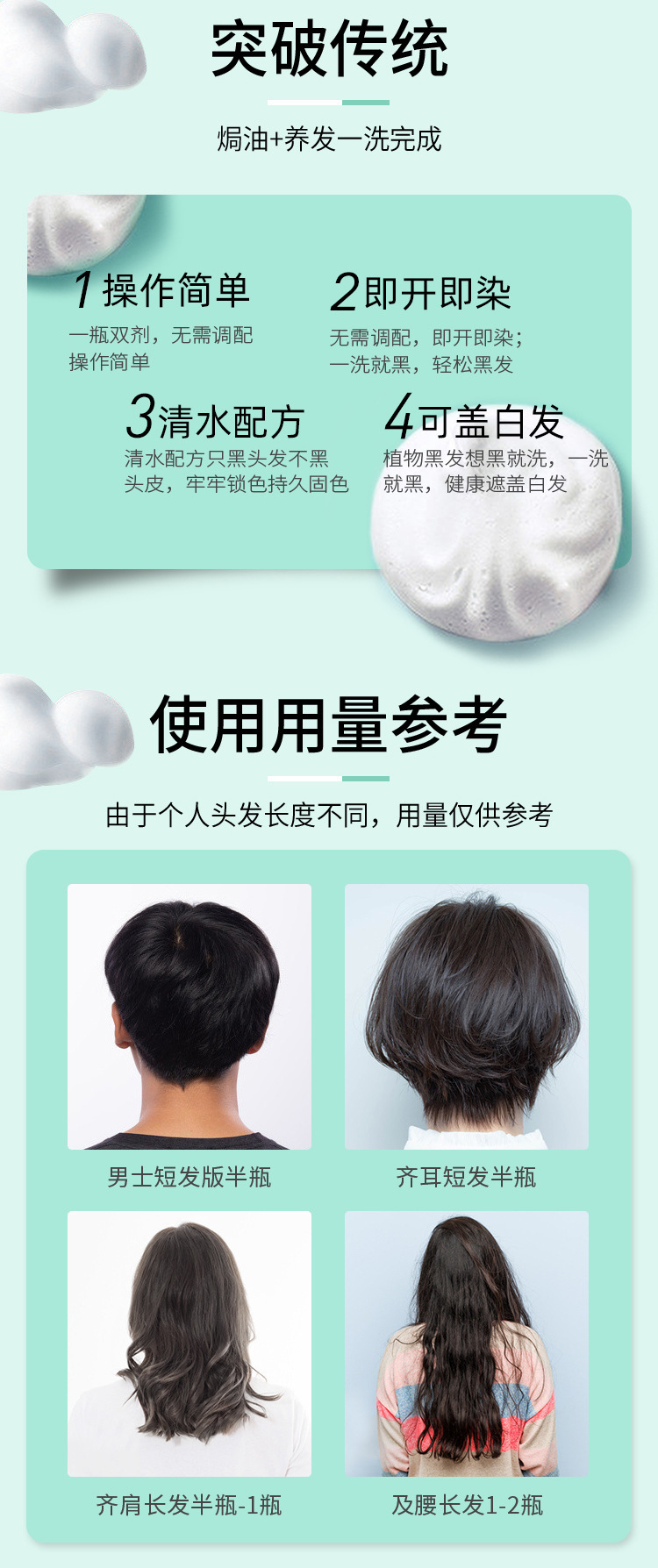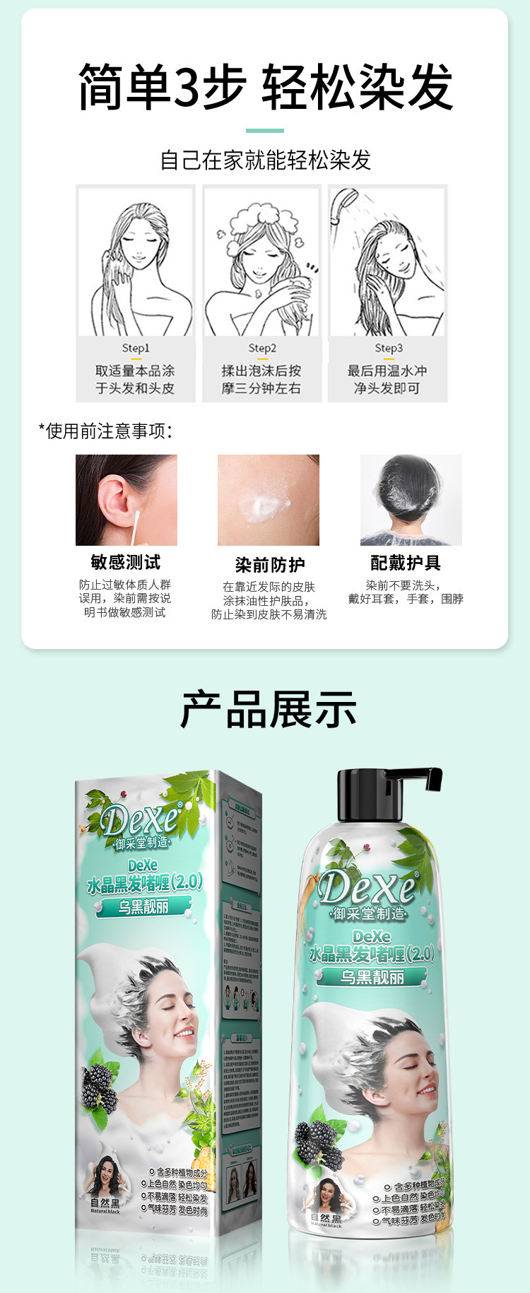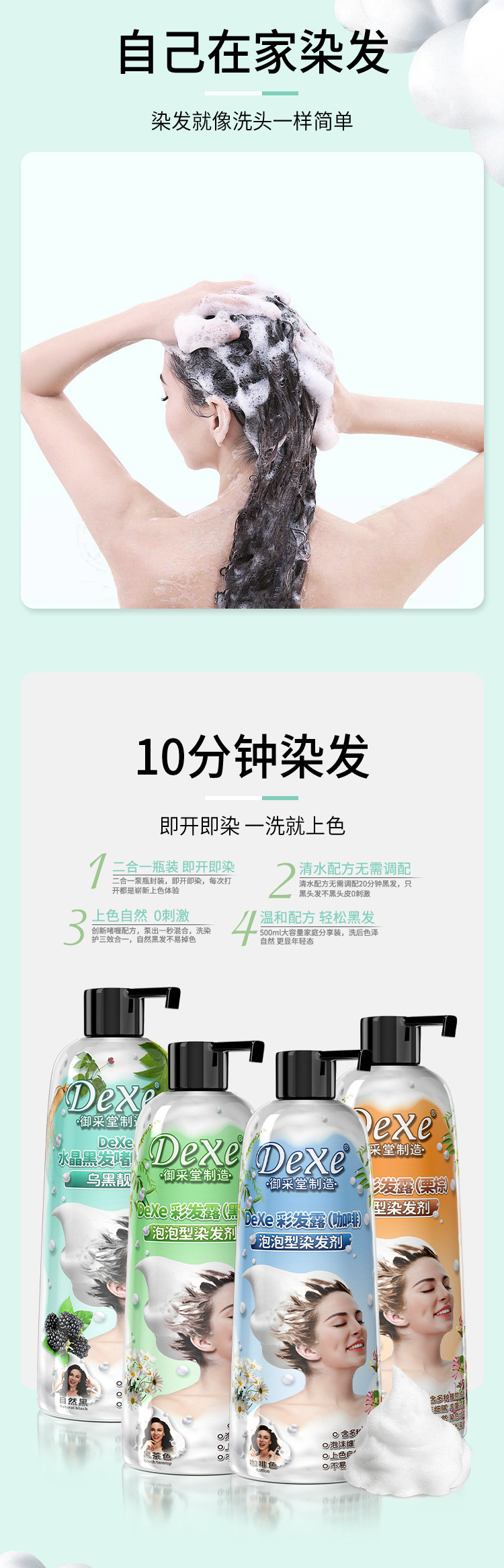 【无需调配❗️泡泡染发膏剂】焗油+养发一洗完成,上色自然0刺激,温和配方轻松黑发,植物家用不沾头皮盖白发染发膏瓶装泡泡染QQ