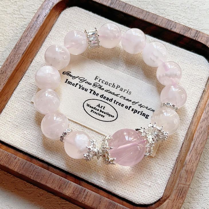 【原创水晶❗雪花幽灵粉晶】来pick你的幸运水晶,温柔治愈系小仙女必备,手串简约温柔小红书抖音网红爆款QQ