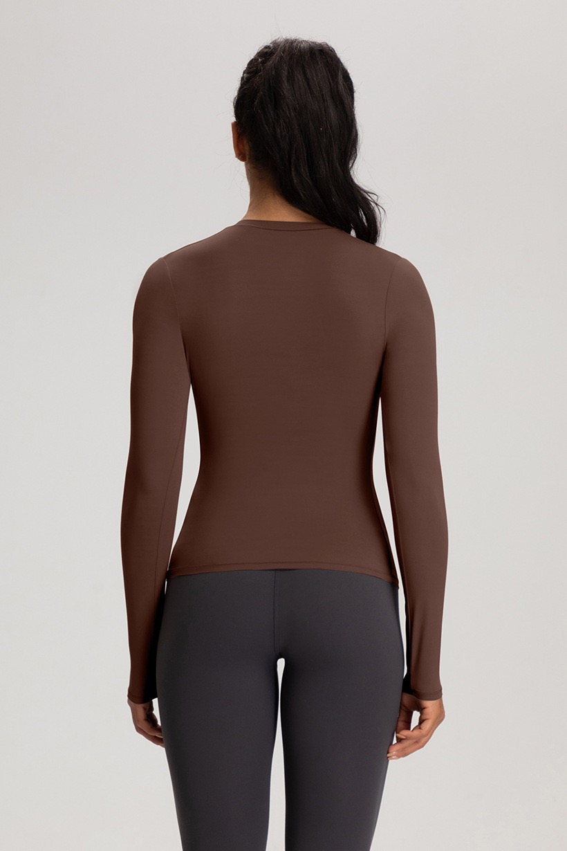 新款欧美瑜伽服女卡轻薄高弹圆领显瘦运动健身长袖上衣YN CX94