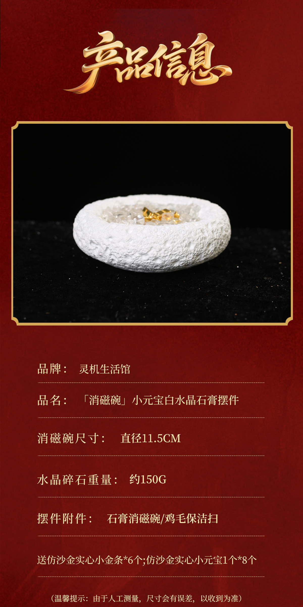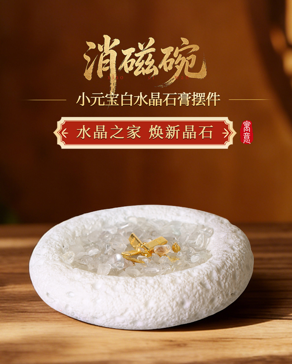 【祈愿吉品】「消磁碗」小元宝白水晶石膏摆件幸运物家居办公室
