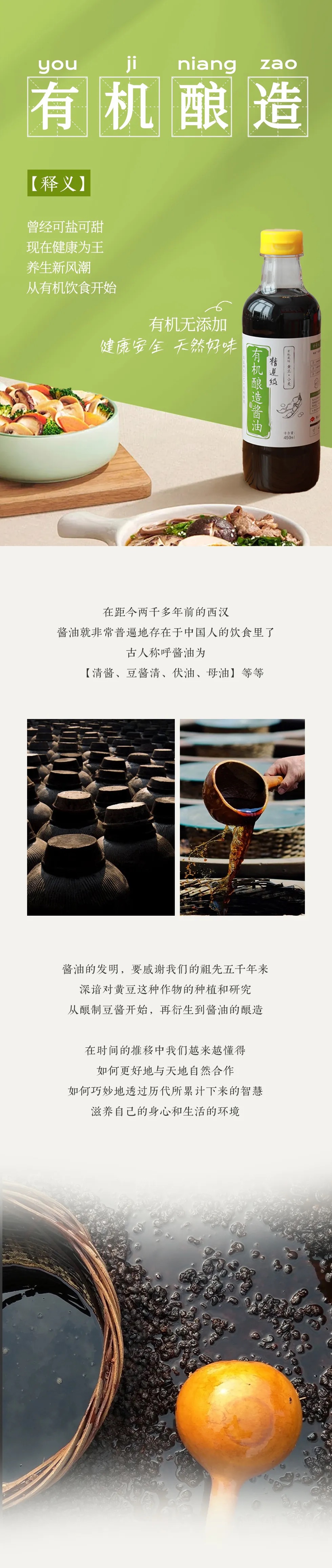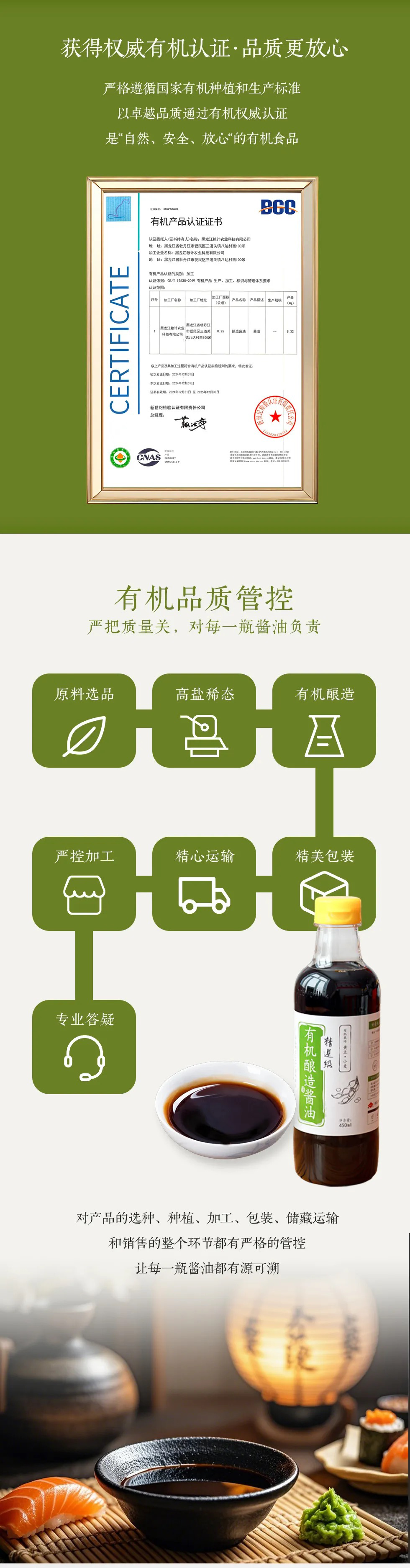 【有机酿造酱油】450ml/瓶 有机认证 自然鲜香 0添加