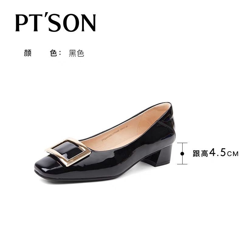 《云粉节》BF楼自由姿色(百田森)方扣单鞋2025新款超软牛漆皮中高跟气质高级不累脚吊牌价1080