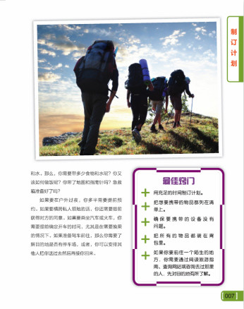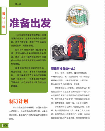 本书涵盖了少年儿童户外生存的全方位内容,包括制定户外计划、户外衣物和设备的准备、观察动植物、阅读地图、野外宿营、饮食安全等户外生存的必备技能,也 包括远足、登山、骑行、游泳、独木舟、洞穴探险等适合孩子的户外运动方法,更有在户外遇到紧急情况时的求生救援方法的讲解,和对于孩子在户外运动时的团队 合作等社交能力的培养。