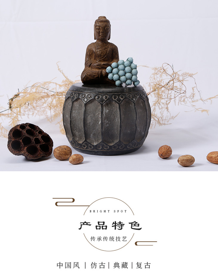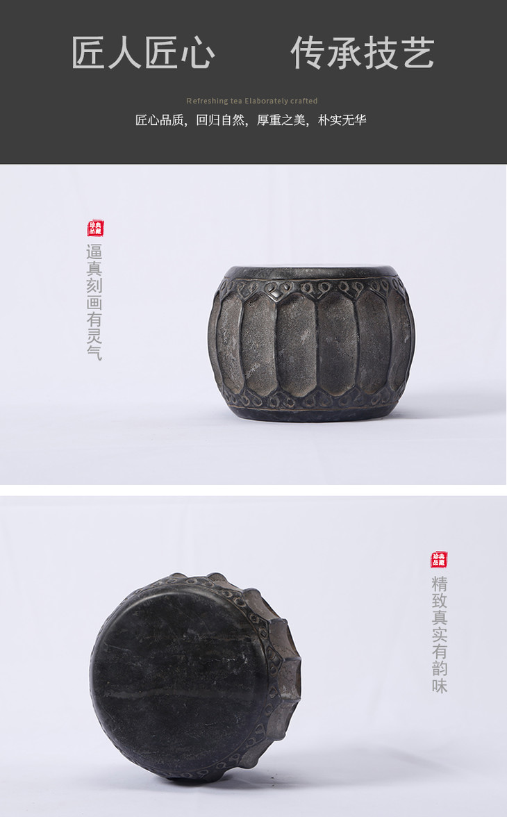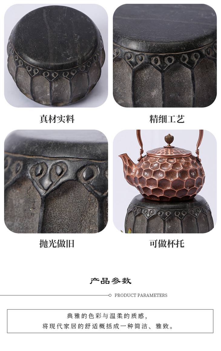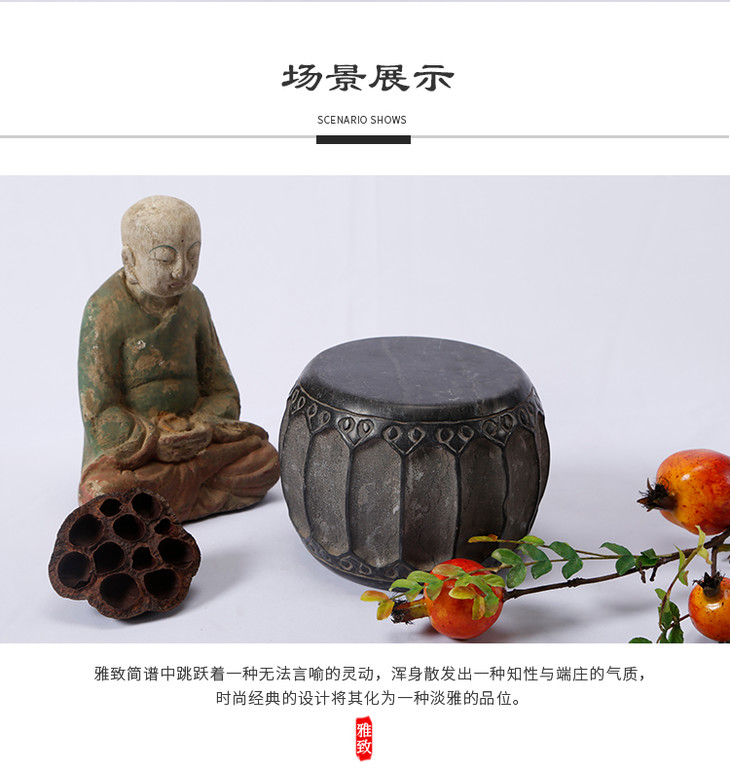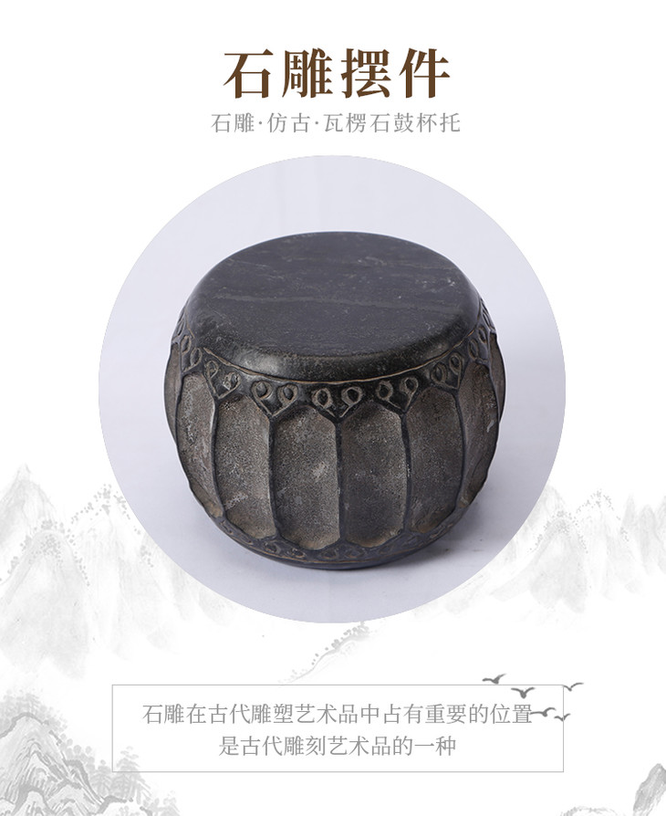 青石雕刻仿古石鼓石头摆件软装饰品柱顶石柱墩石墩石鼓茶杯托底座