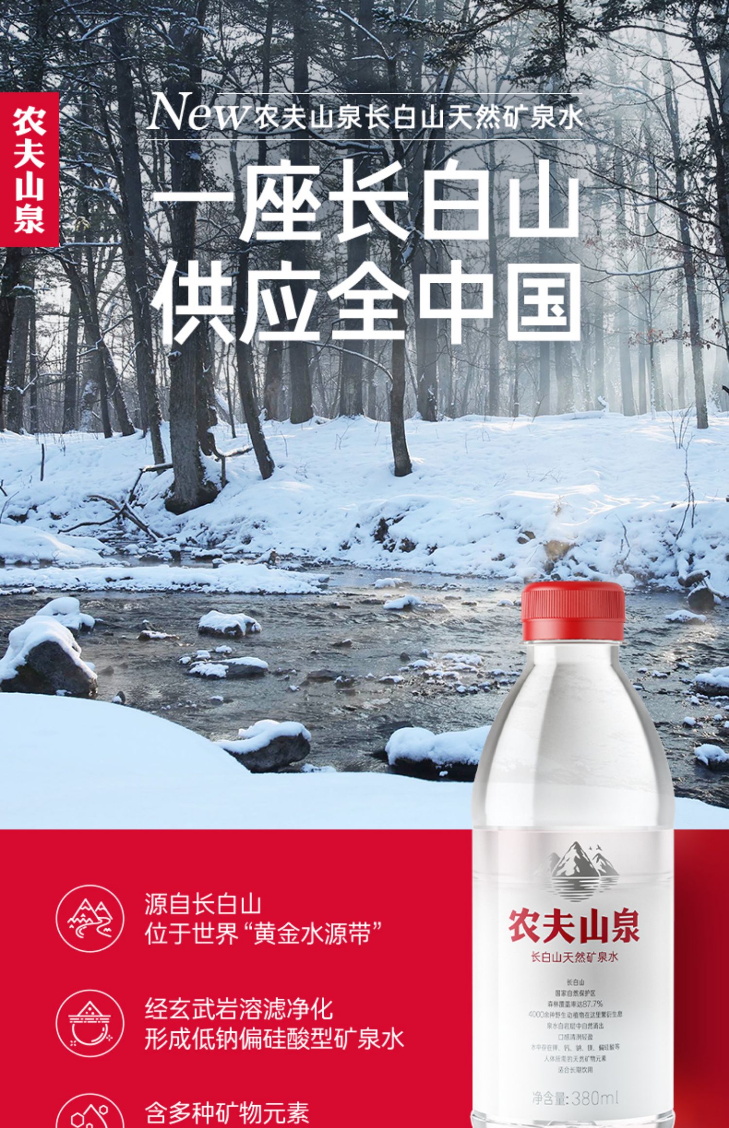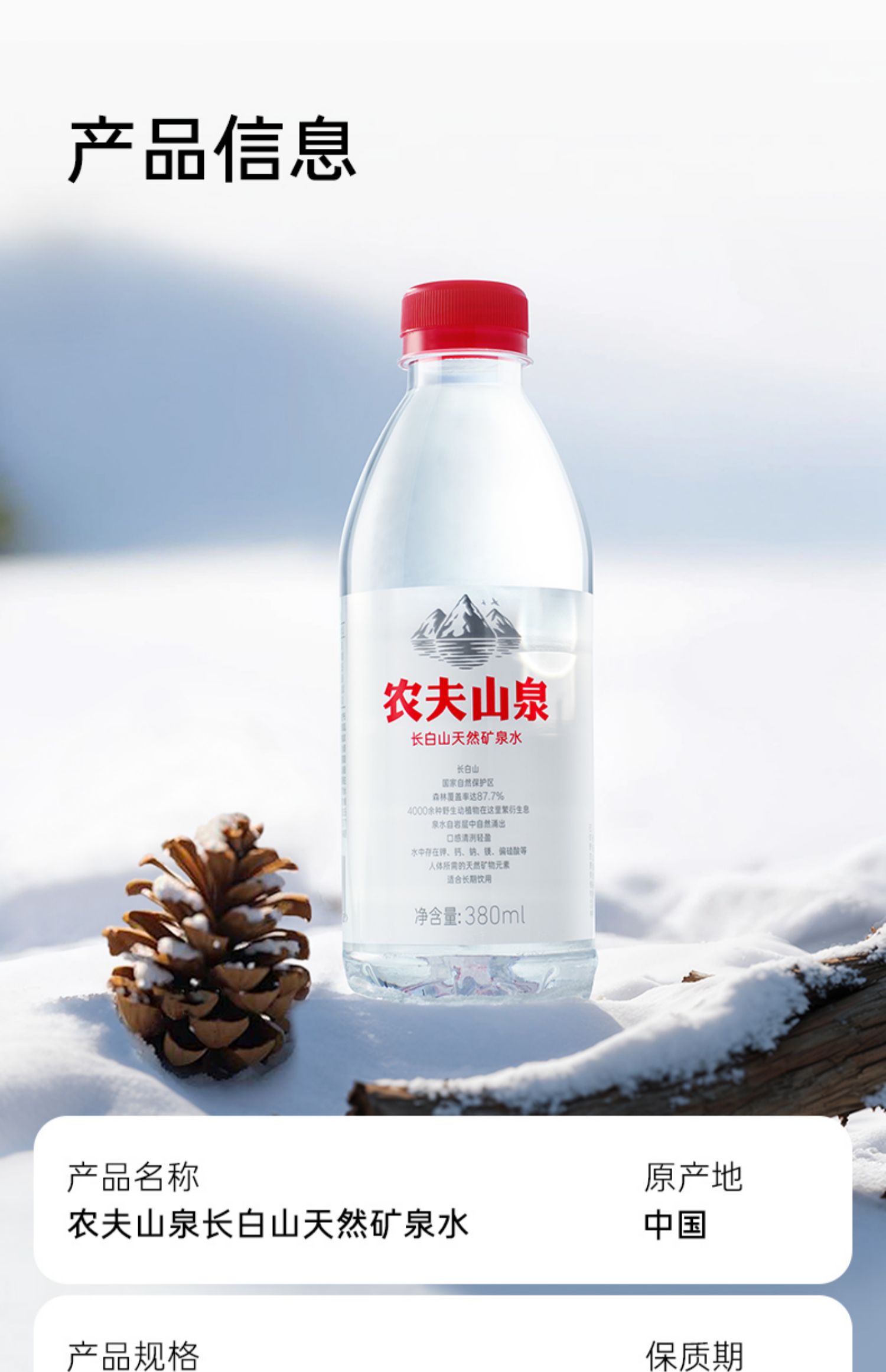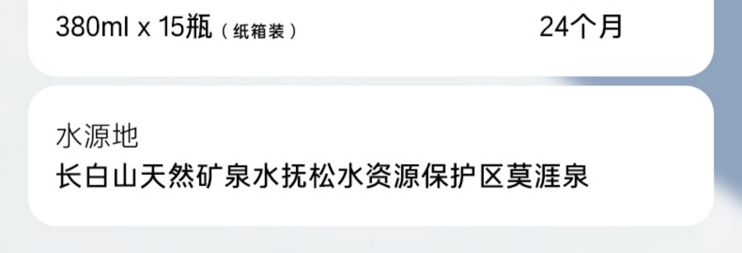 【新品】农夫山泉长白山天然矿泉水380ml*15瓶整箱