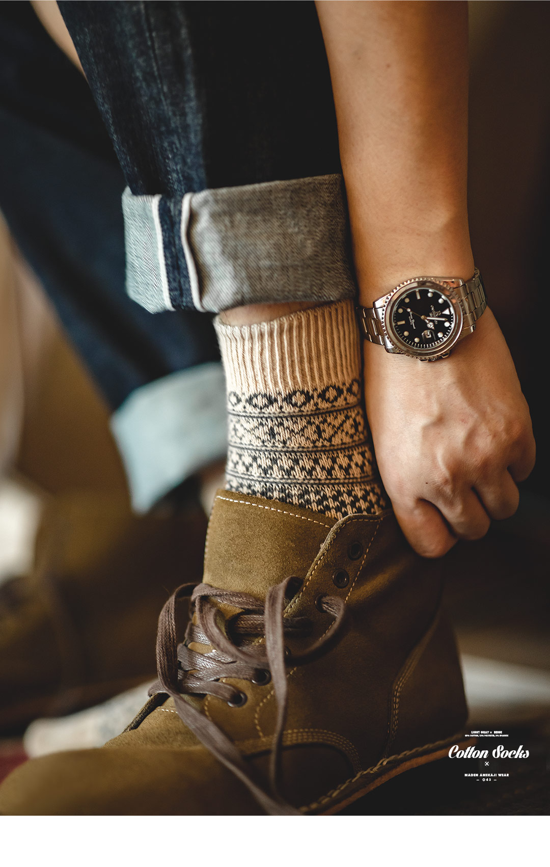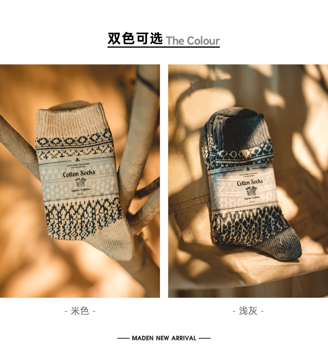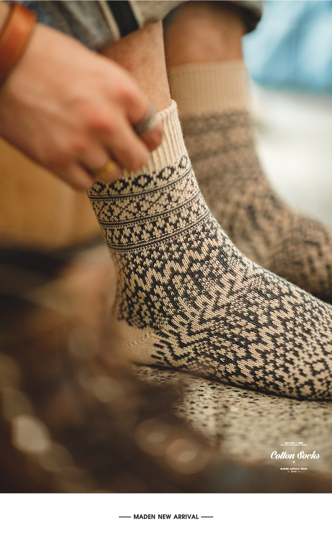 工装精选 美式复古费尔岛针织中筒袜民族风阿美咔叽保暖长袜子男冬