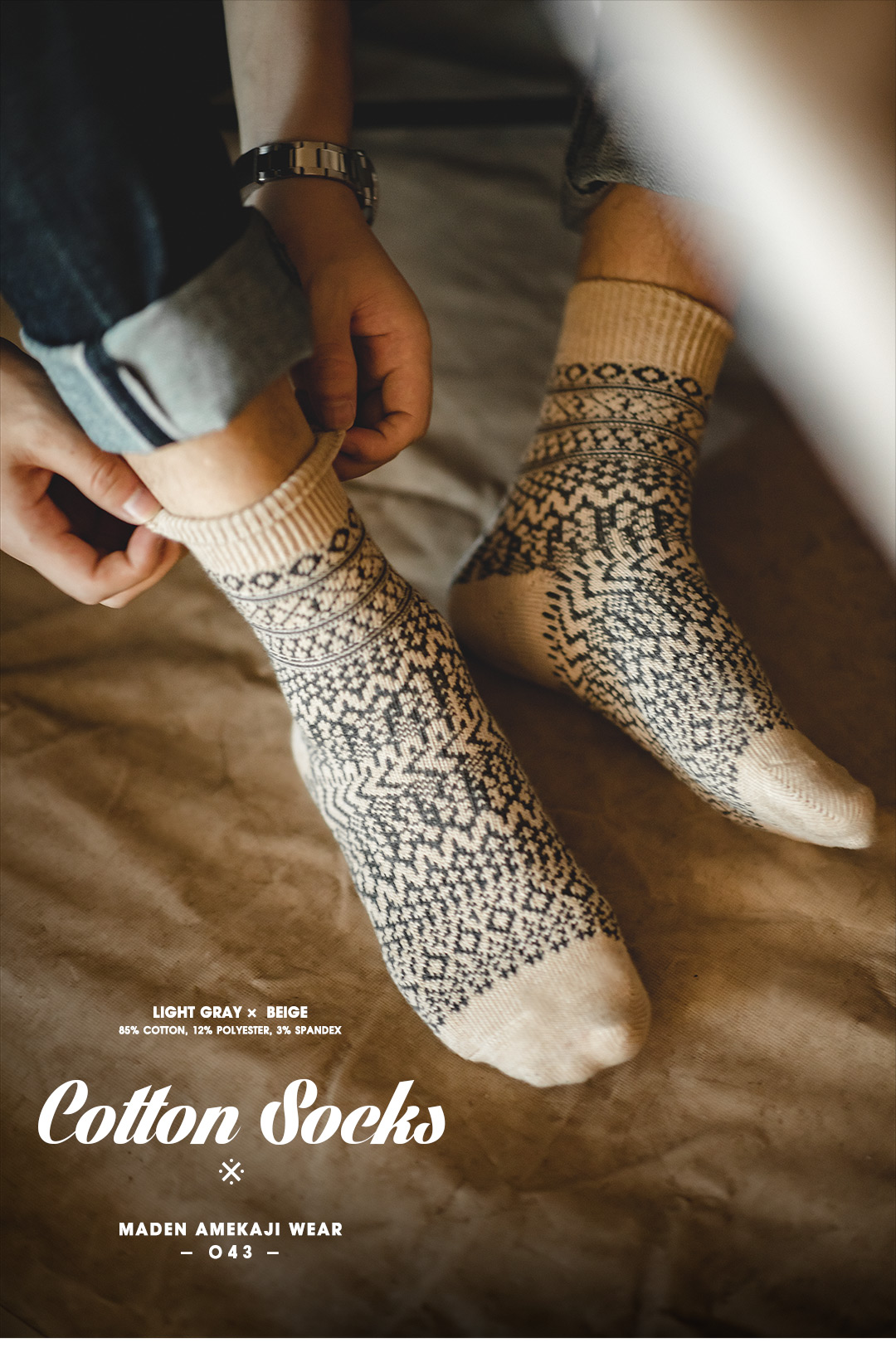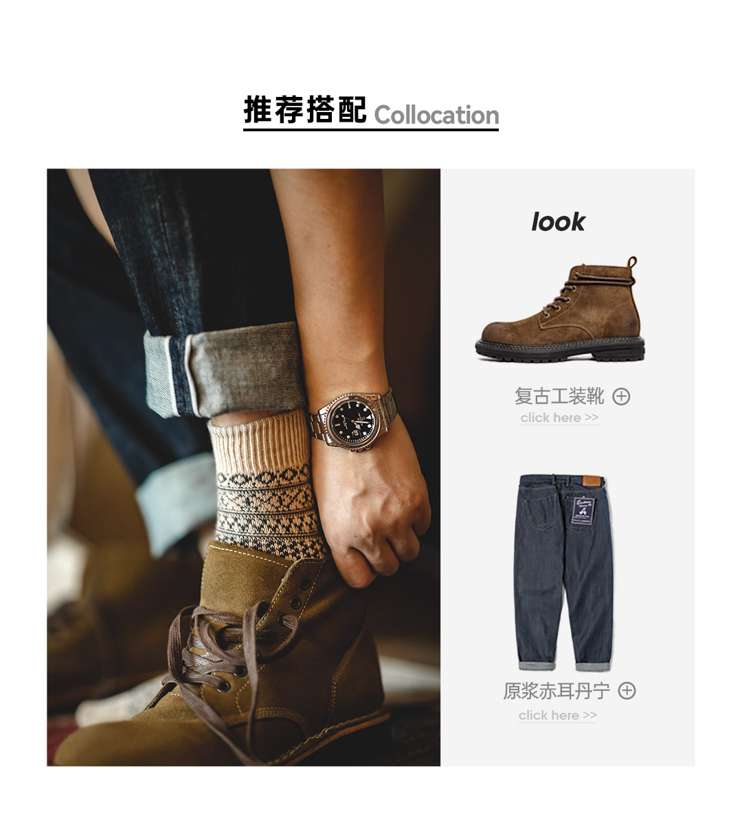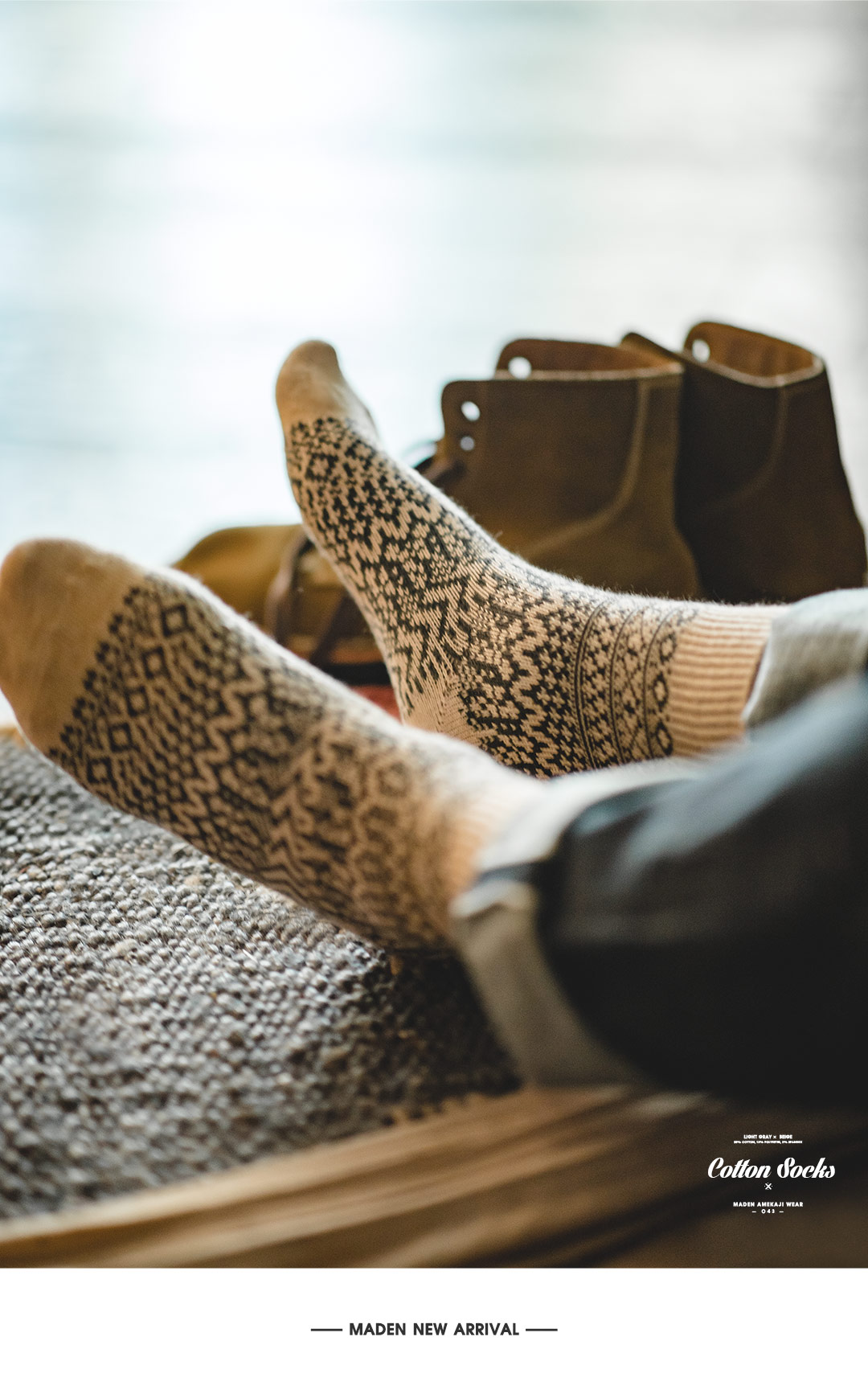 工装精选 美式复古费尔岛针织中筒袜民族风阿美咔叽保暖长袜子男冬