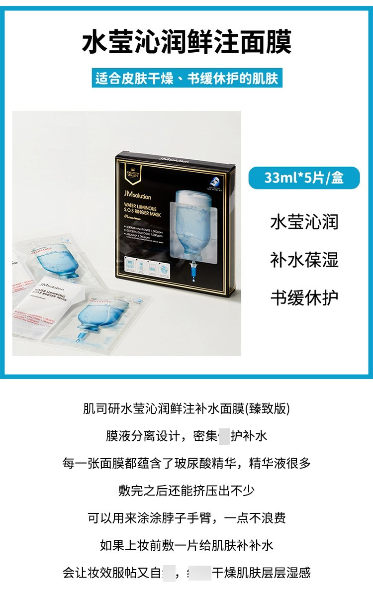 【活性双仓 急救修护】韩国JM面膜双仓急救面膜 补水修复保湿紧致改善暗沉蚕丝珍珠蜂蜜面膜5片