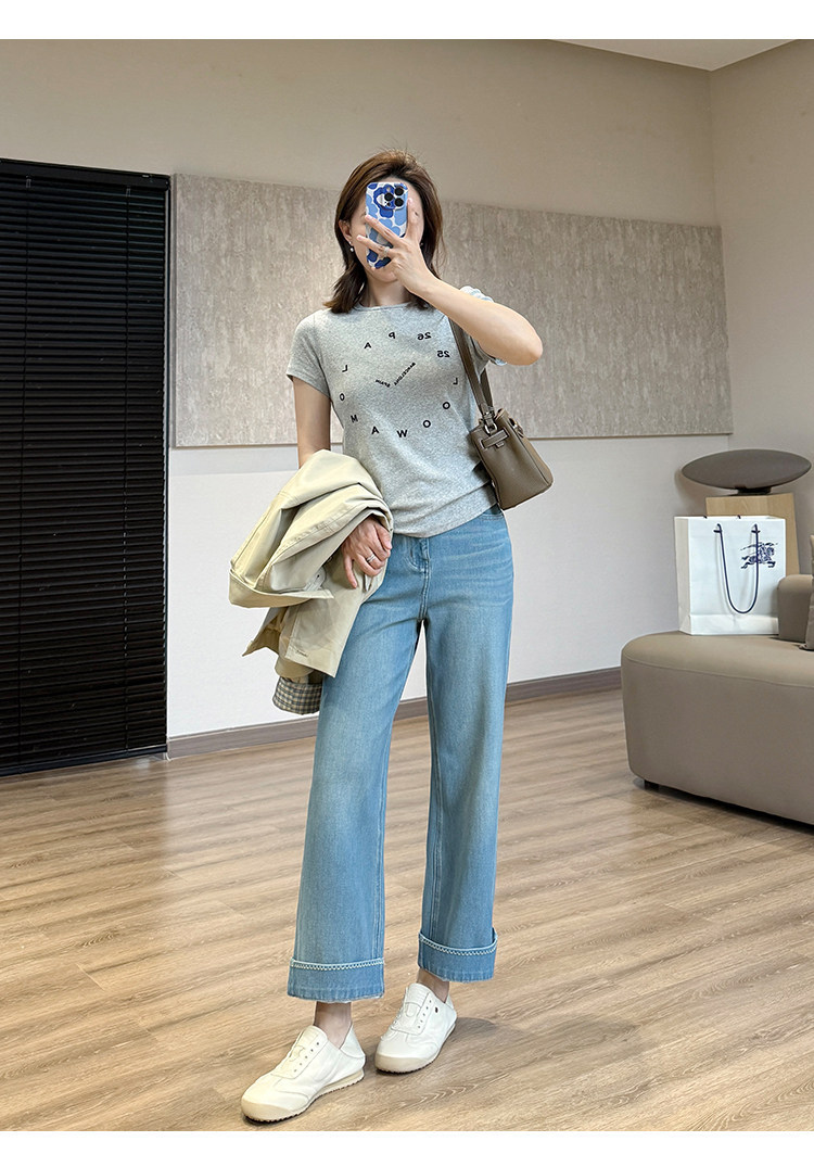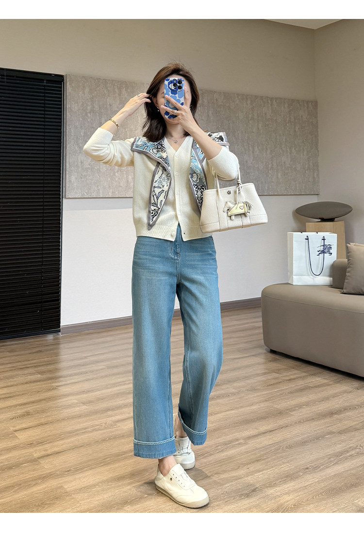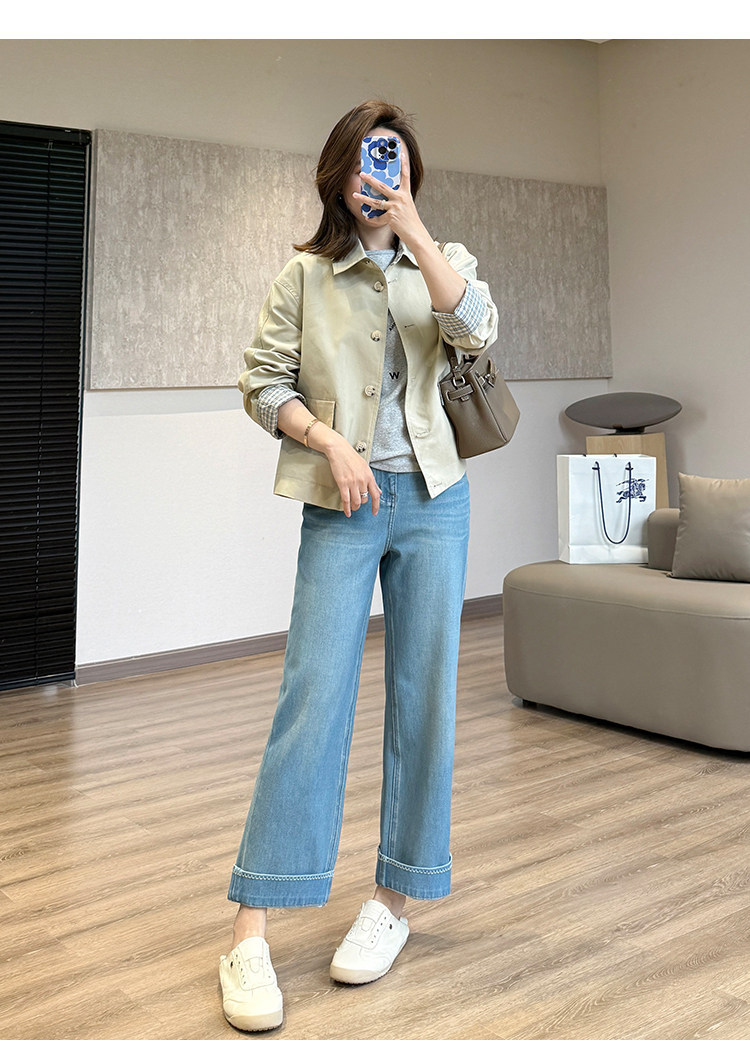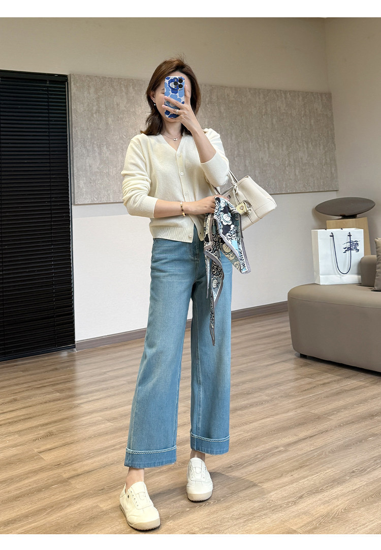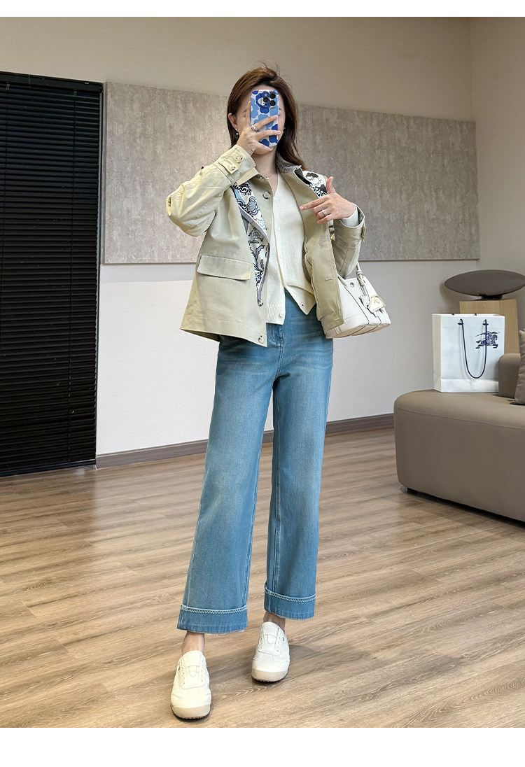 九分长度刚好露出脚踝,春天穿刚刚好~