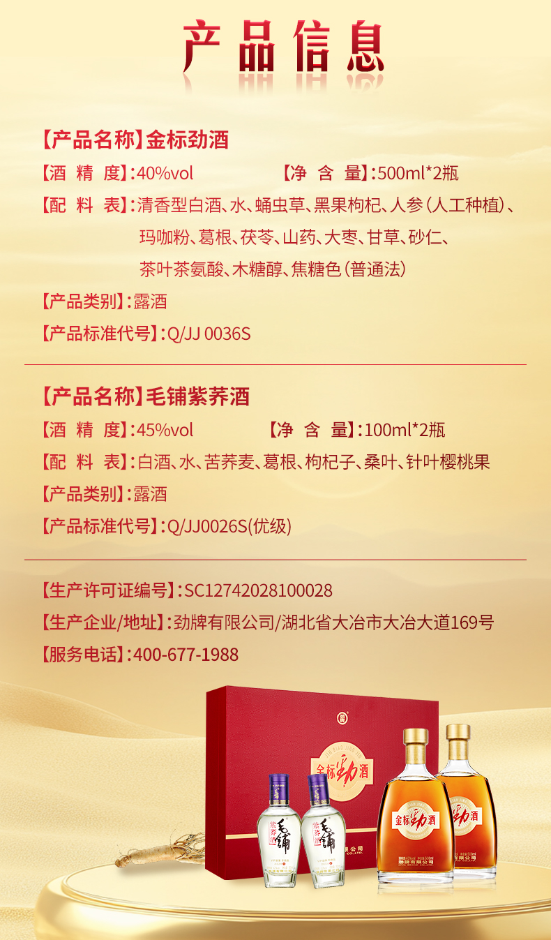 【新品组合】40度金标劲酒75ml*3瓶+36度蓝标劲酒125ml*3瓶