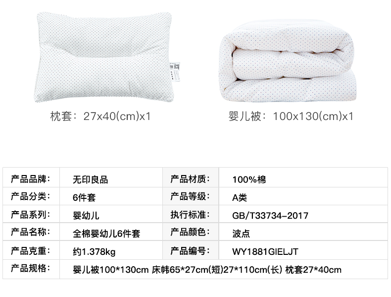 全棉婴幼儿被子件套纯棉可机洗全棉男女件套床帏枕套被子套装 无印良品正品
