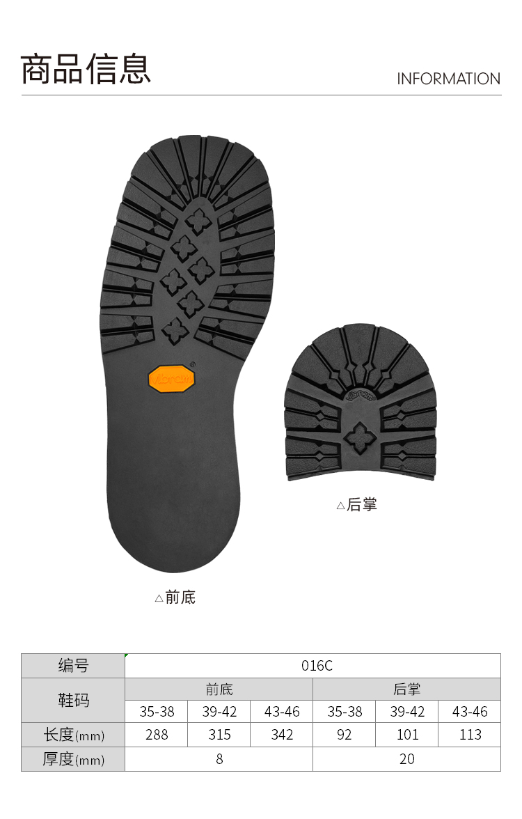 Vibram016C橡胶鞋底后掌鞋材换底材料
