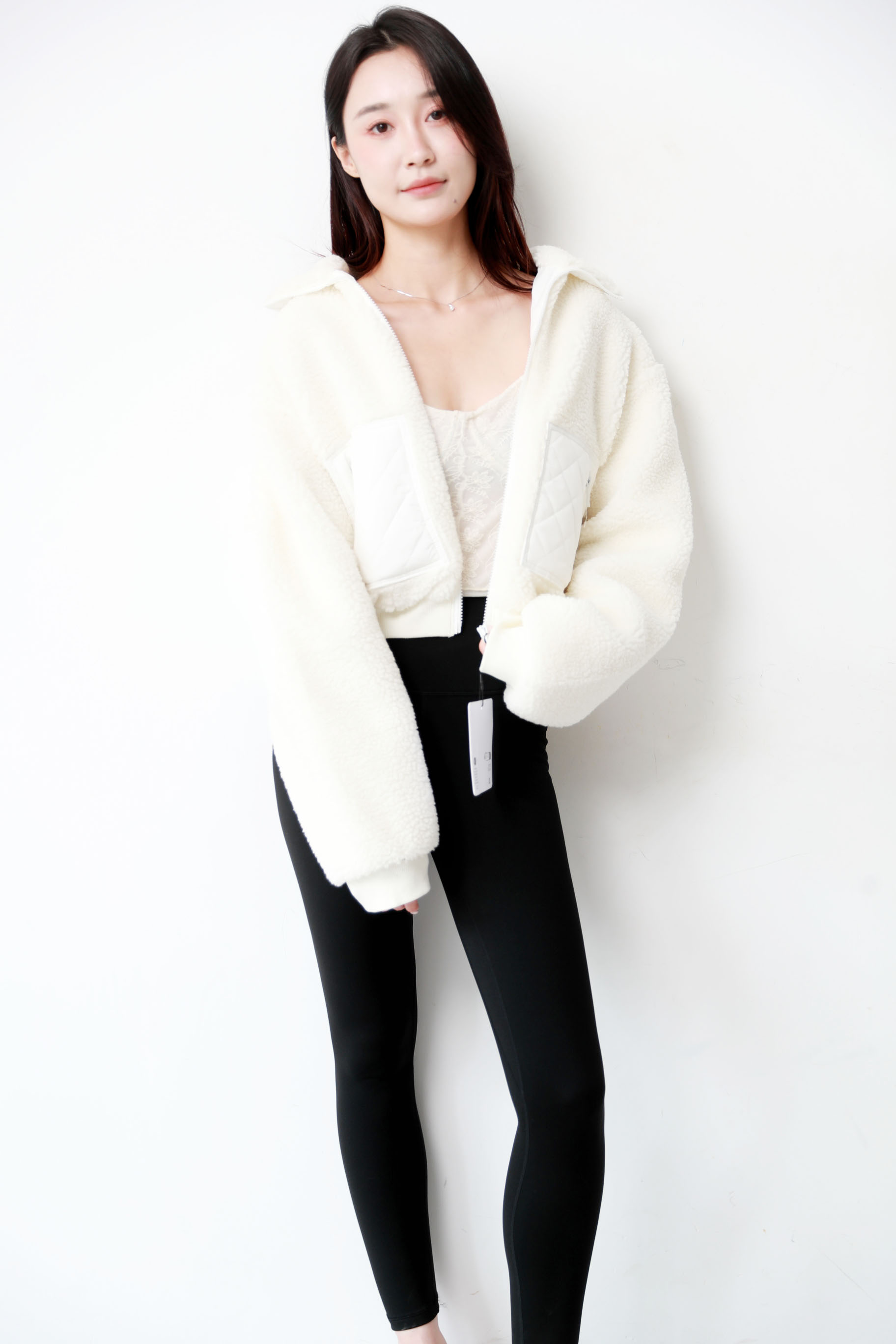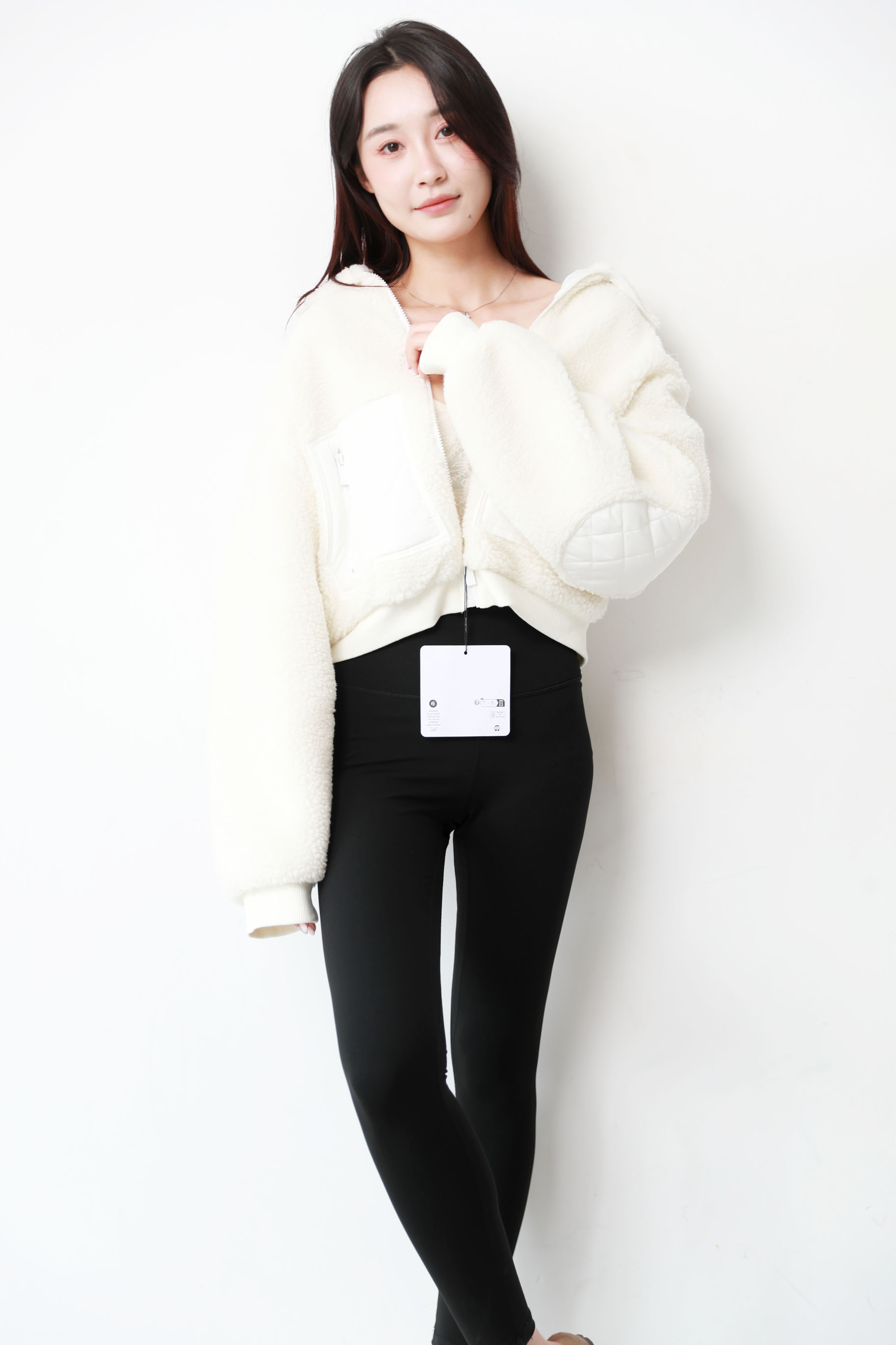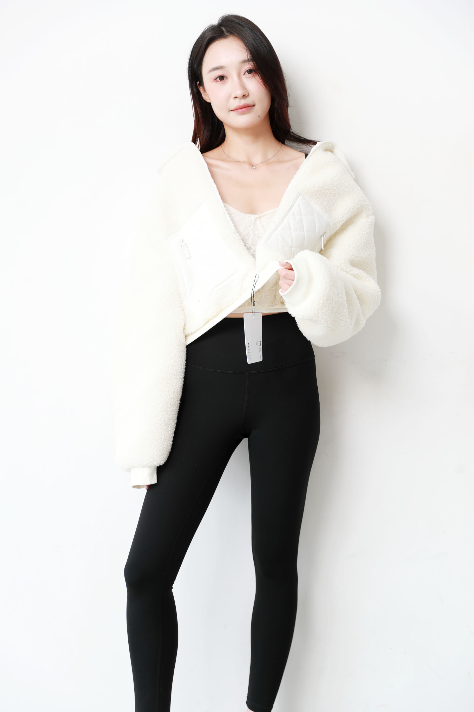 小方标+大翻领,是普拉提羔毛外套。美式复古拉链瑜伽夹克C092958
