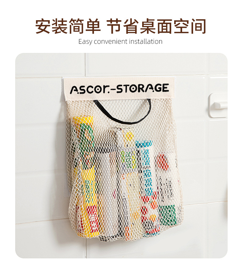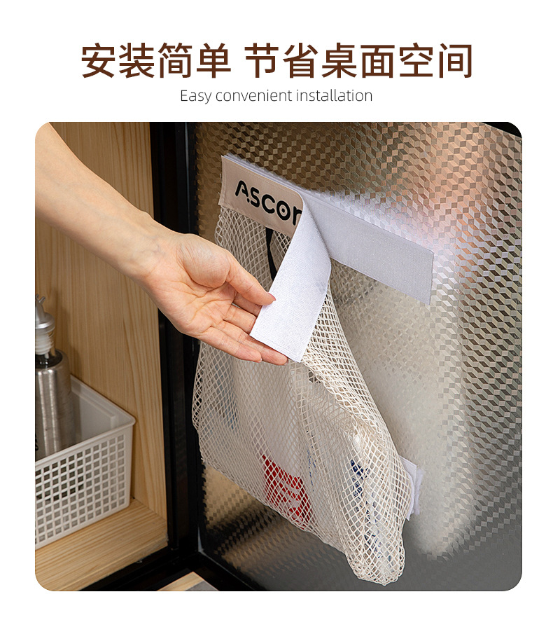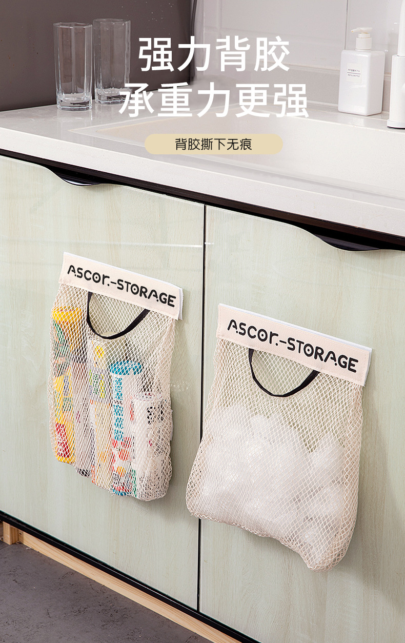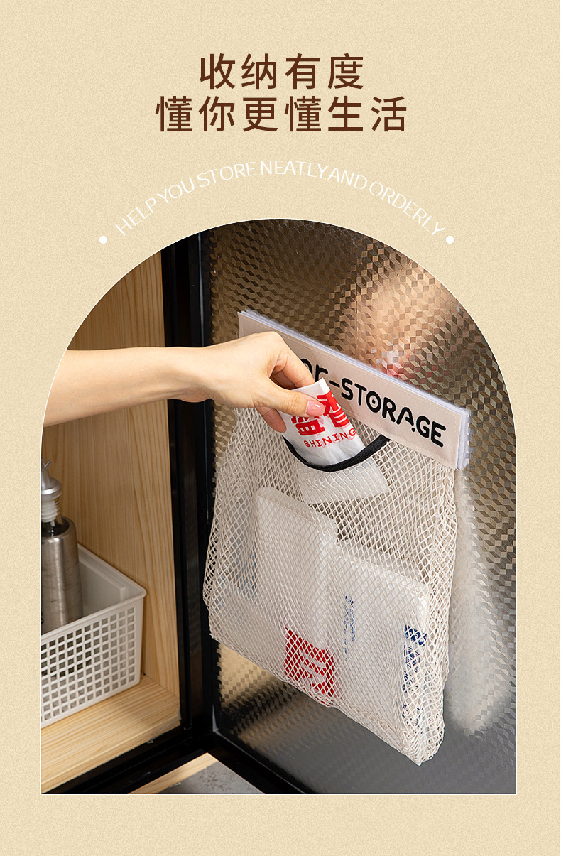 【魔术网兜!厨房收纳神器】挂壁不占空间,超多用途魔术贴网兜收纳神器,壁挂式大容量储物袋子装塑料袋收纳QQ