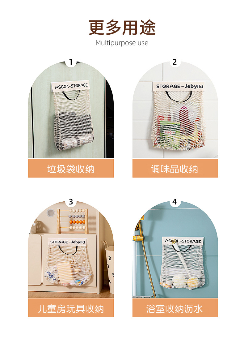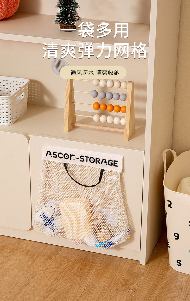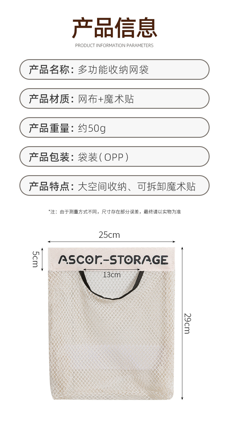 【魔术网兜!厨房收纳神器】挂壁不占空间,超多用途魔术贴网兜收纳神器,壁挂式大容量储物袋子装塑料袋收纳QQ
