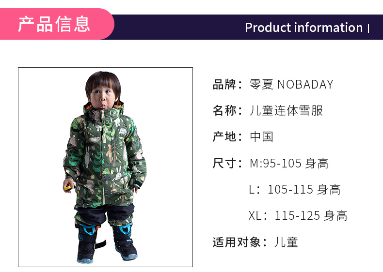 【特价399】NOBADAY儿童连体雪服防水透气保暖 单板双板滑雪服 NBCM19
