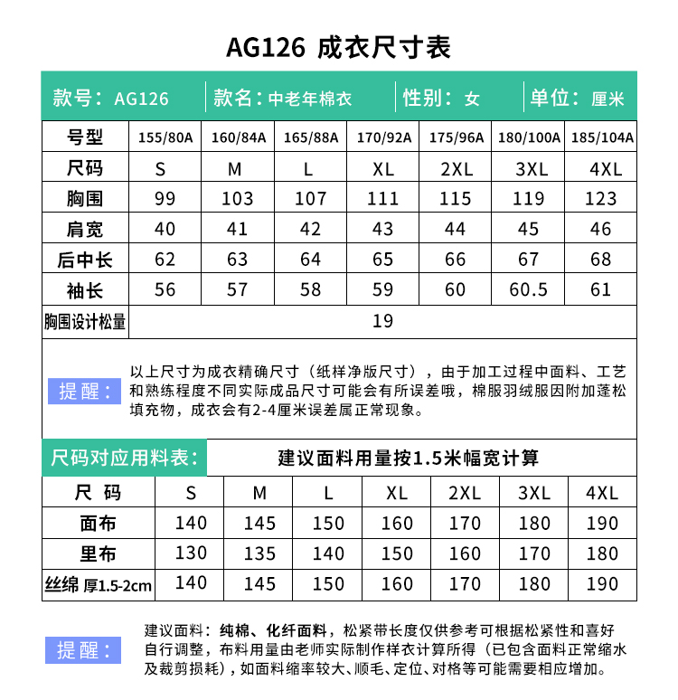 裁缝学苑AG126 中老年妈妈棉衣纸样女装棉服棉袄衣服打版裁剪图装