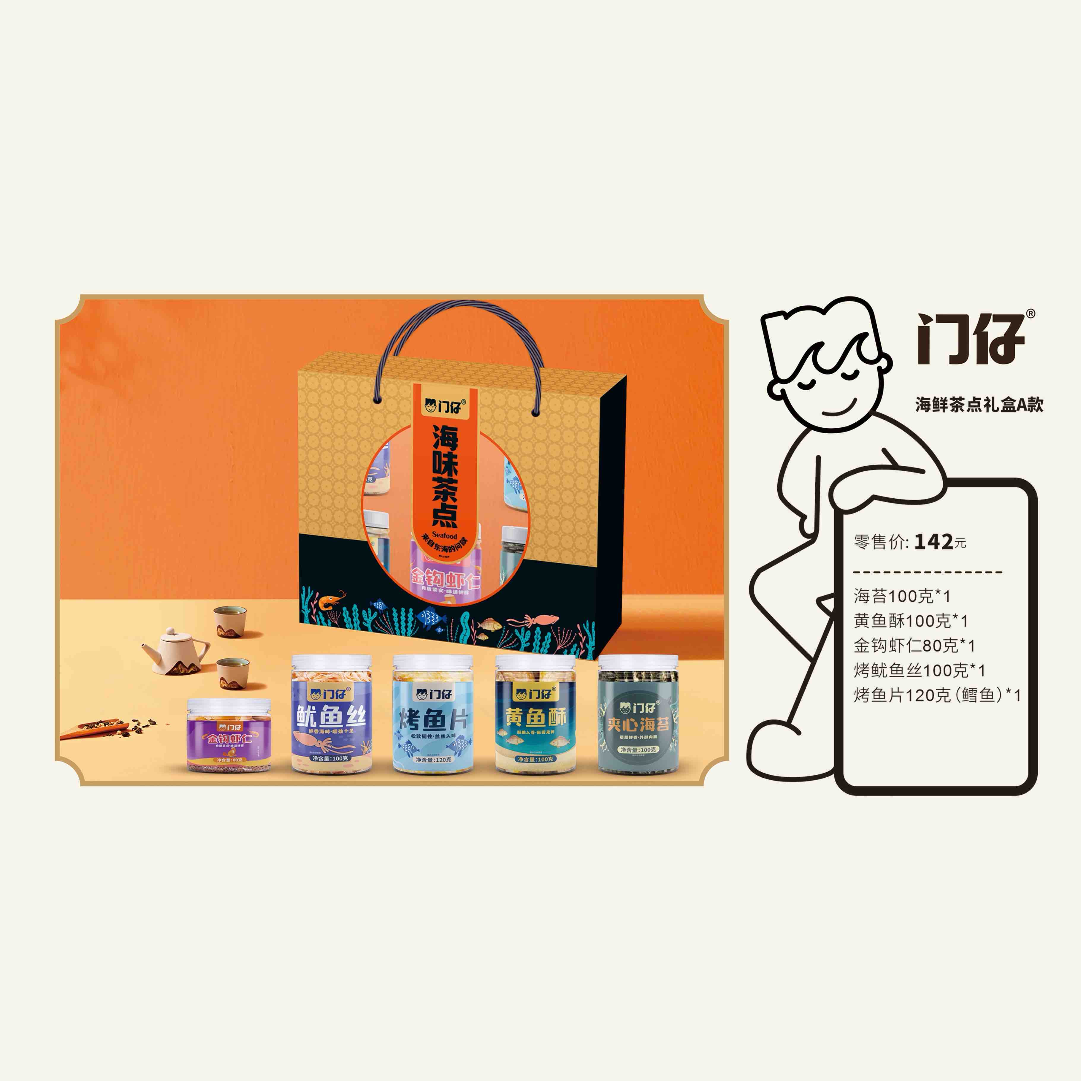 预定活动期间价格优惠霞关特产门仔金勾虾虾干鱿鱼丝烤鱼片黄鱼夹心酥海苔礼盒下单隔天到货!