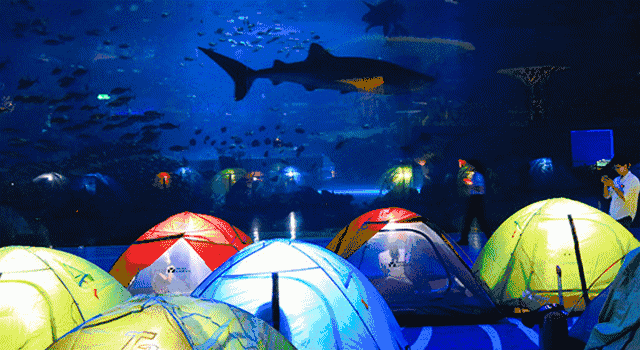 如果能够把帐篷搭在海底隧道,看头顶五彩斑斓的鱼儿游来游去,与海洋里的小动物一起安然入睡,体验与日间完全不一样的奇特旅程,是不是会留给这个假期别样的记忆~