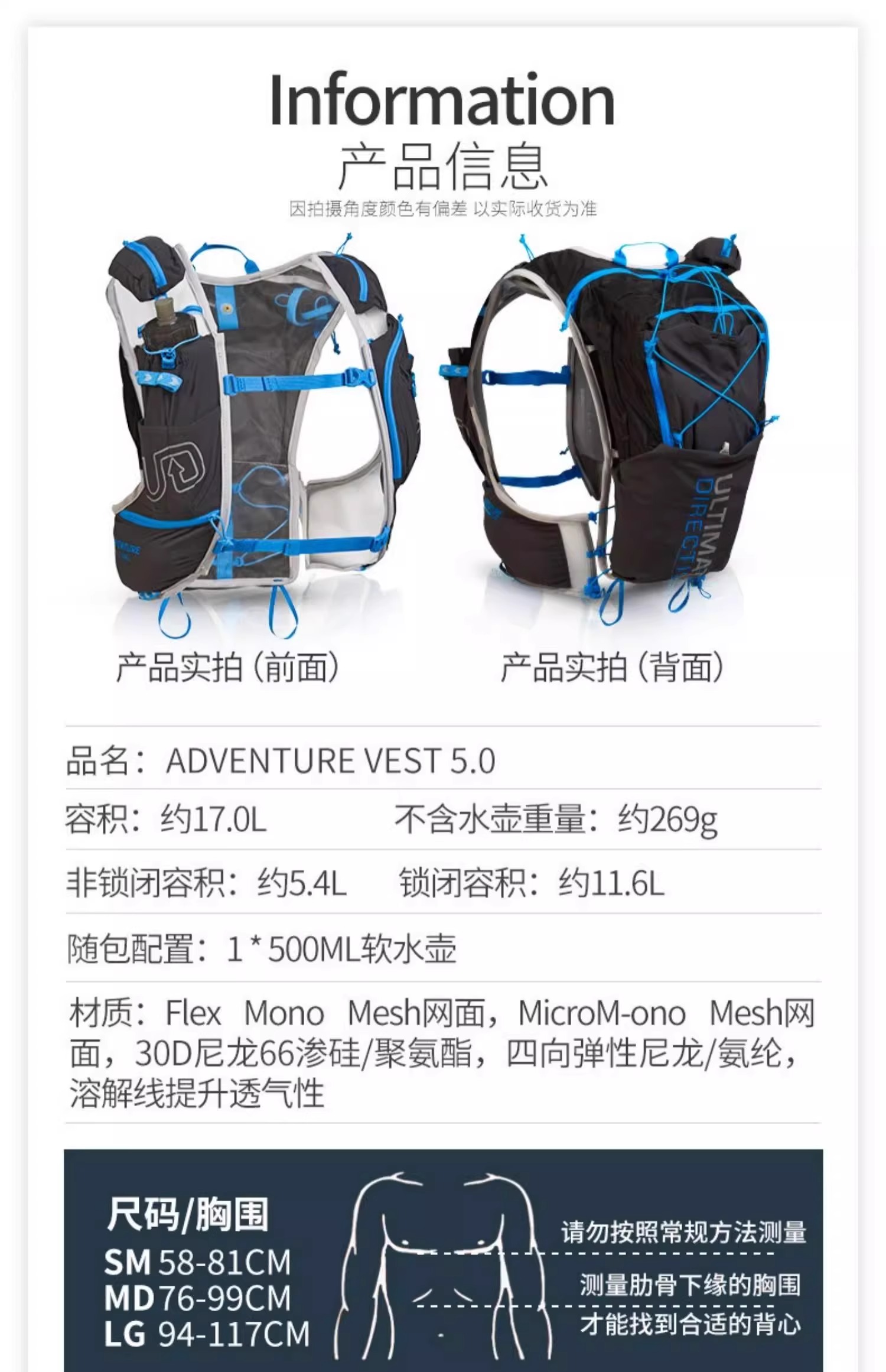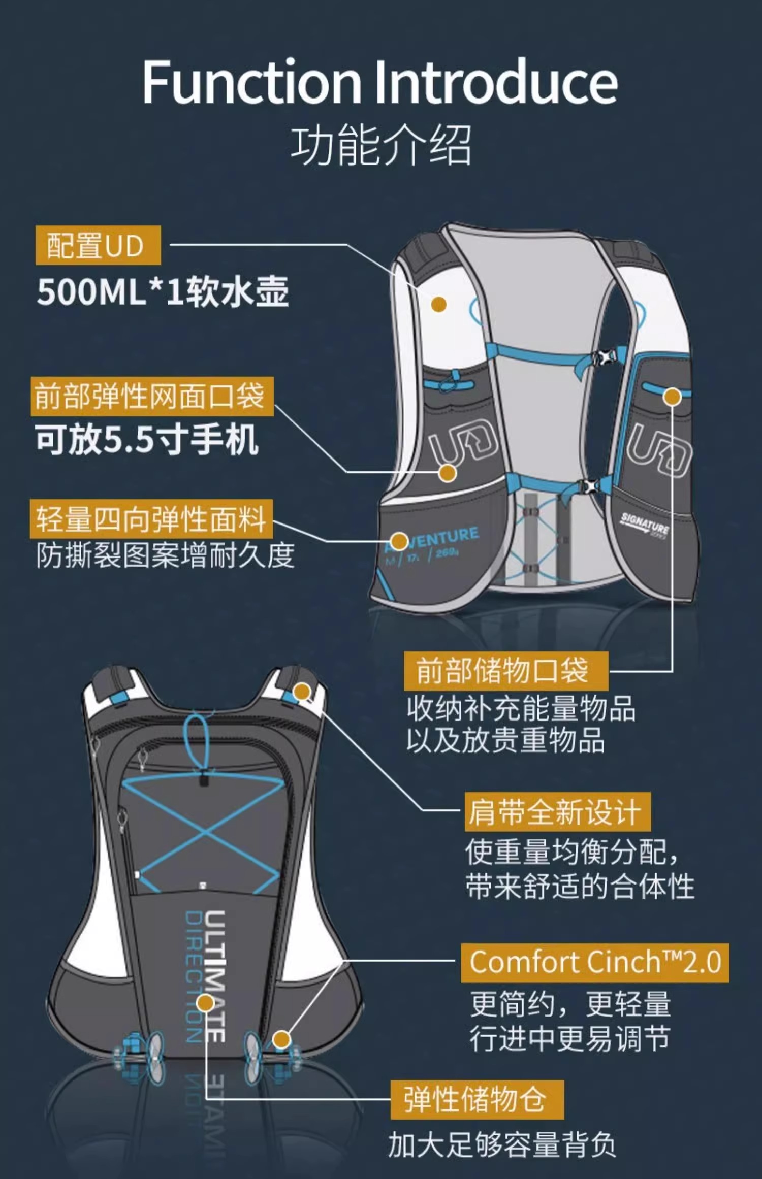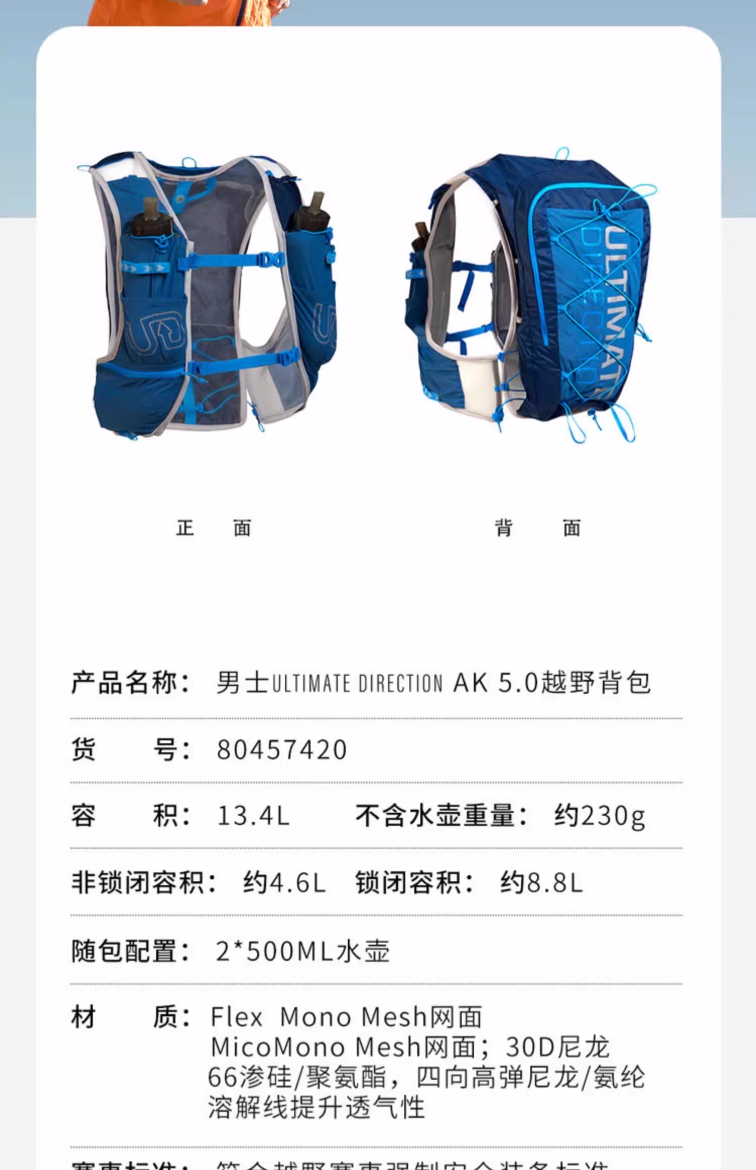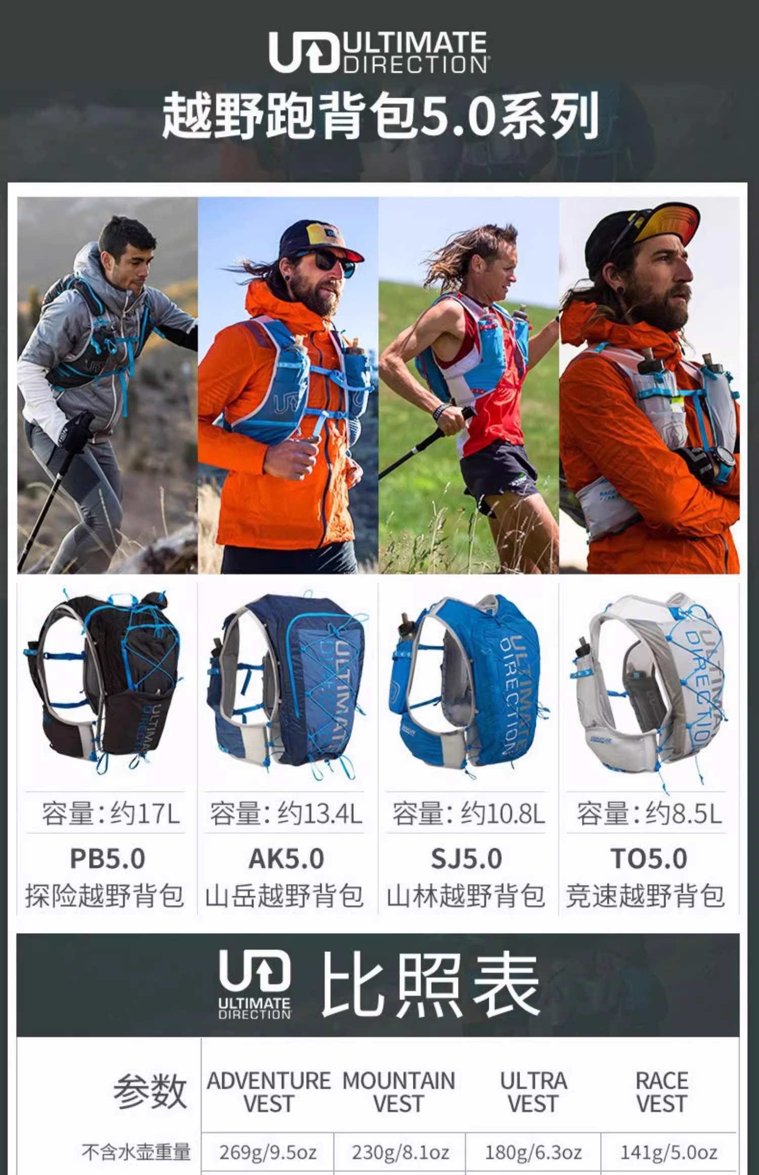 美国UD 女款 越野跑背包PB/AK/SJ/TO 5.0轻量水壶水袋背包