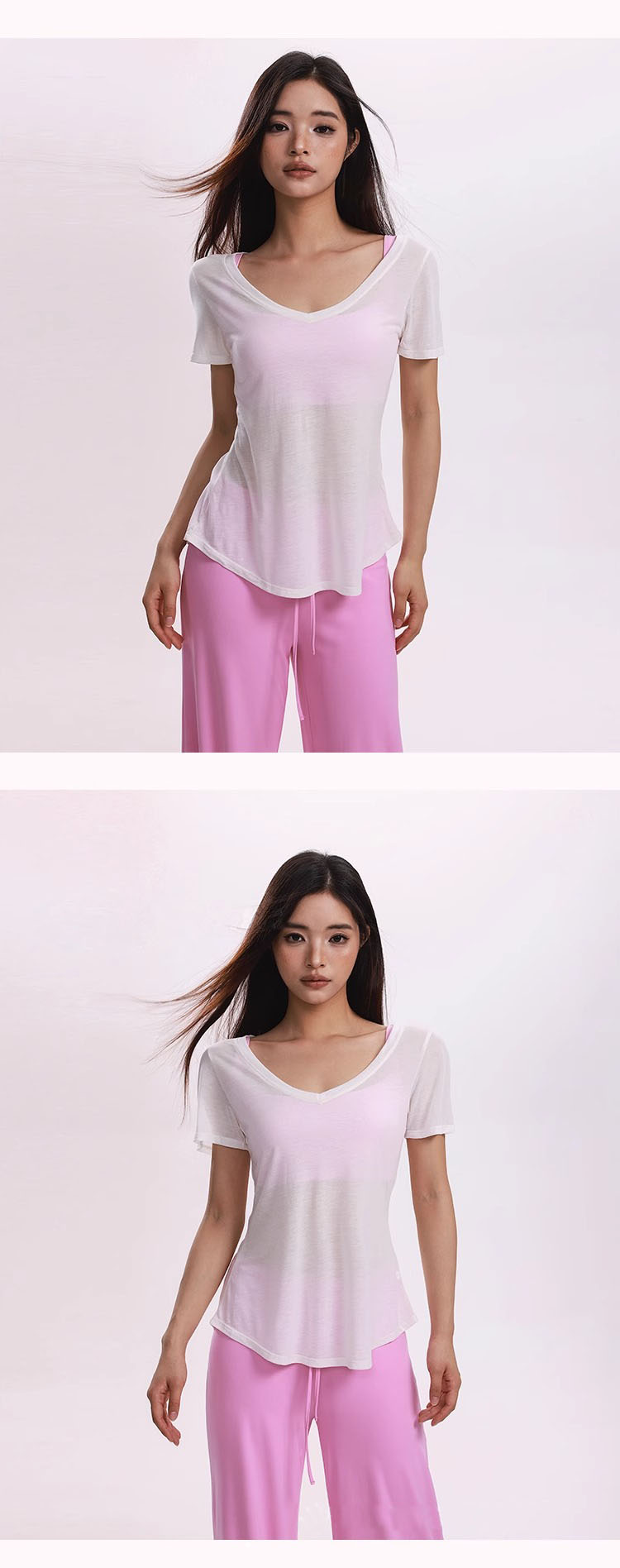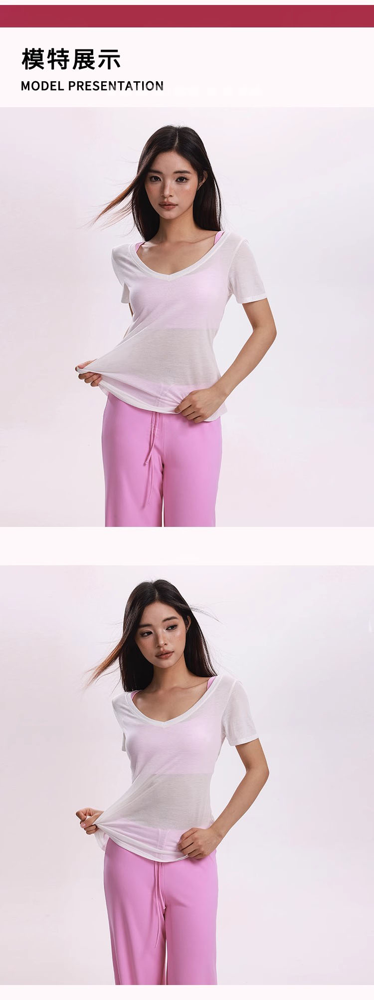 跃牌【禅语梵心】夏季轻薄透气瑜伽短袖女V领显瘦运动休闲健身上衣DX3149