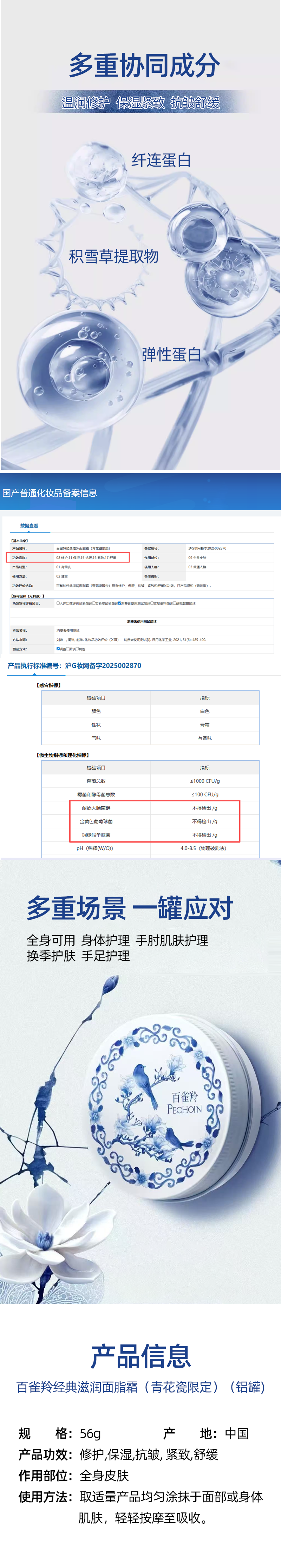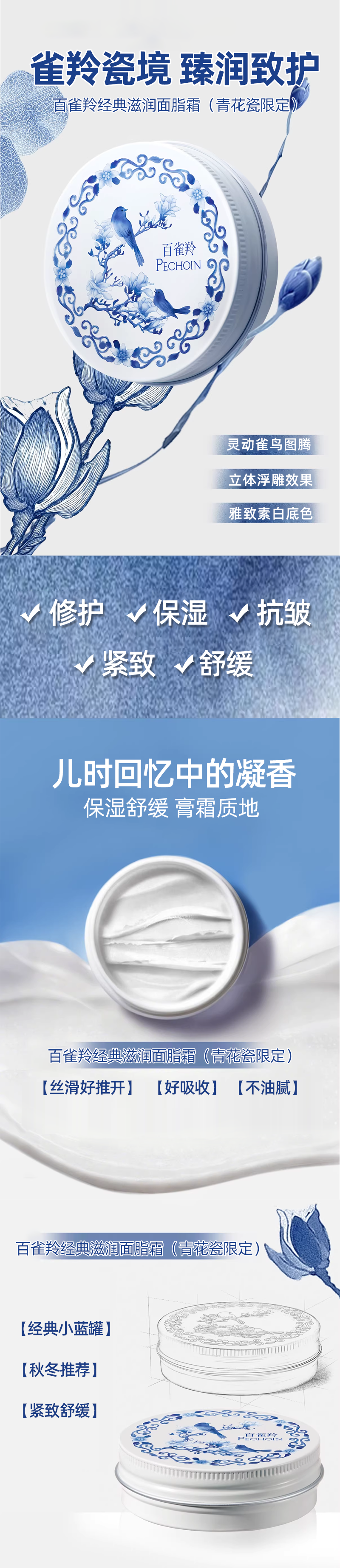 百雀羚经典滋润面脂霜(青花瓷限定)(铝罐)56g【30174344】