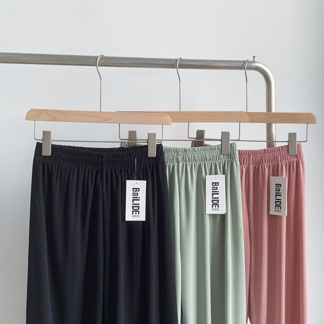 【佰丽得纸片人五色垂感冰爽阔腿裤】纸片人冰丝阔腿裤,以其独特的版型设计和冰丝面料,成为了夏日时尚与舒适的最佳选择
