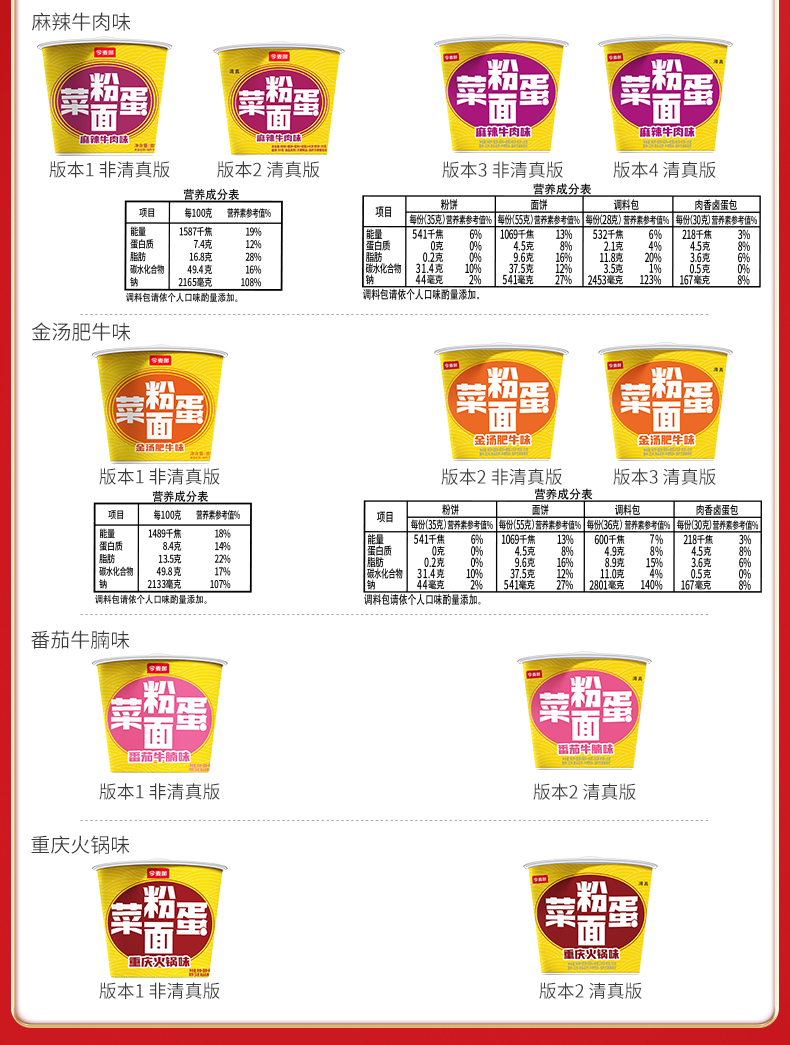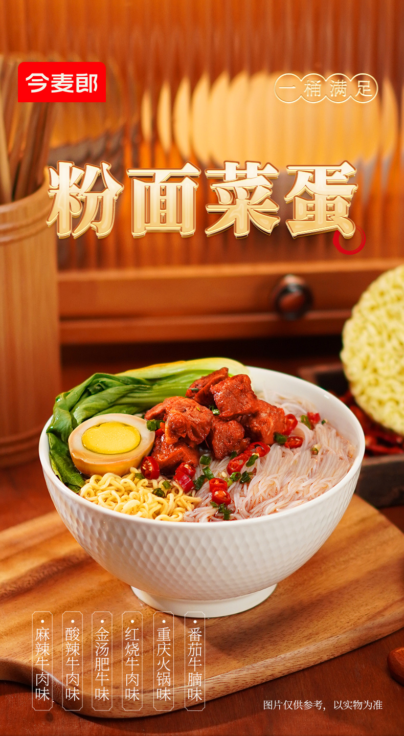 【店铺专享】今麦郎酸辣粉面菜蛋红烧牛肉面粉丝卤蛋菜四合一方便食品12桶装