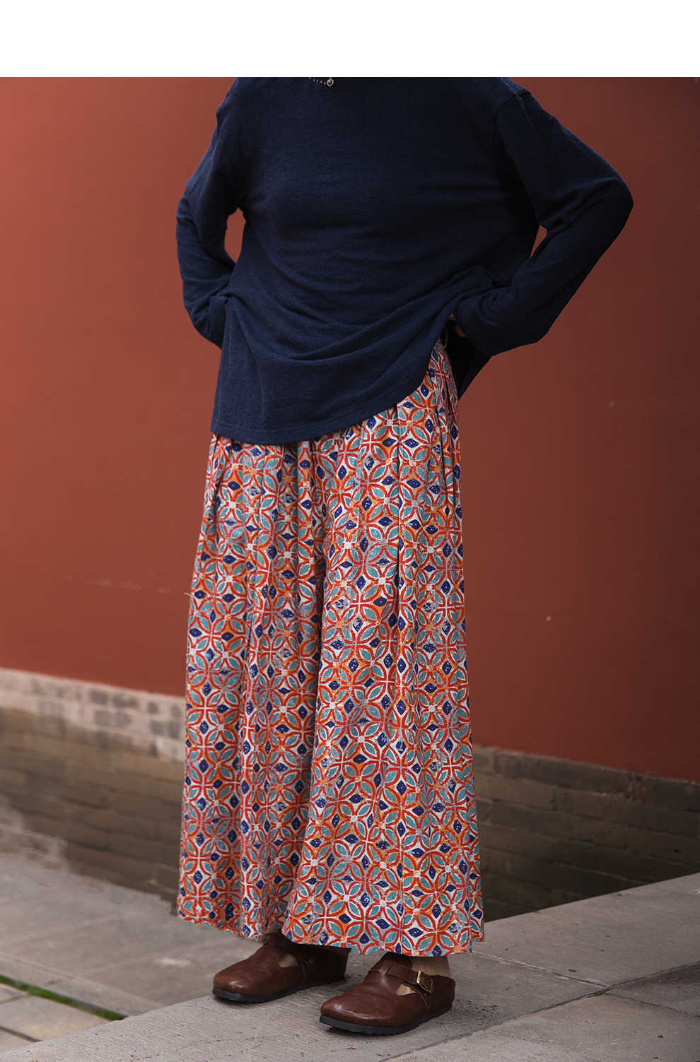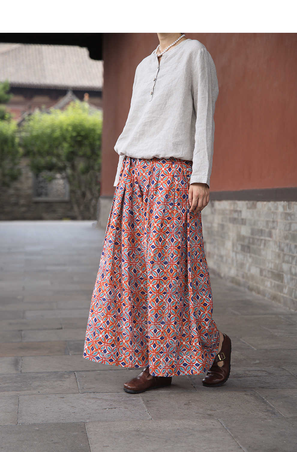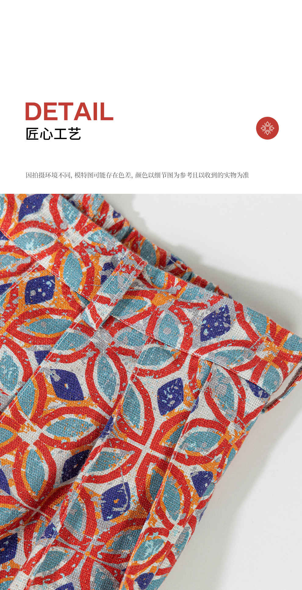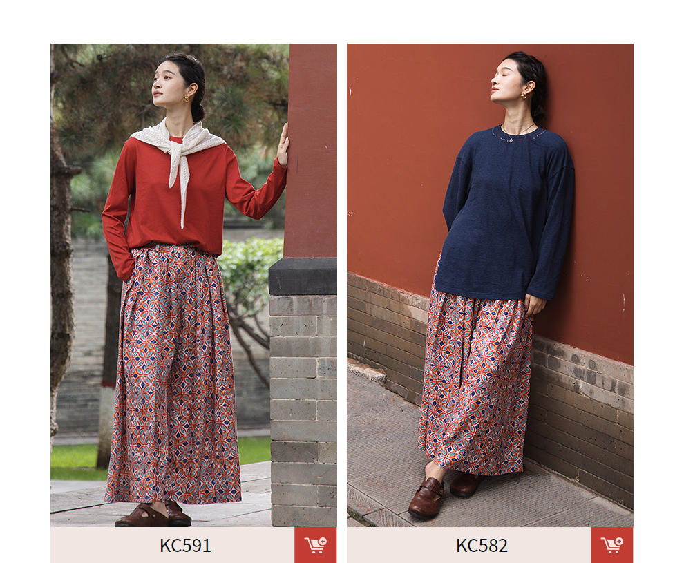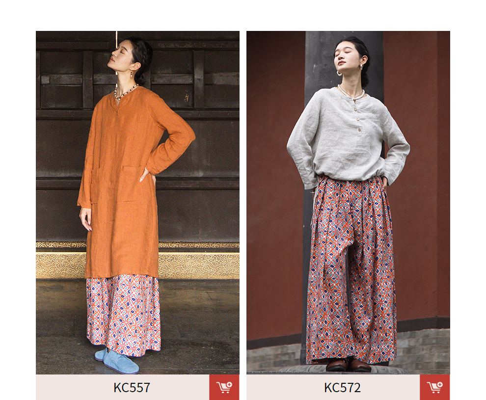 绽放旅行女装600朵/天丝亚麻设计感印花武士裤百搭宽松休闲裤长裤