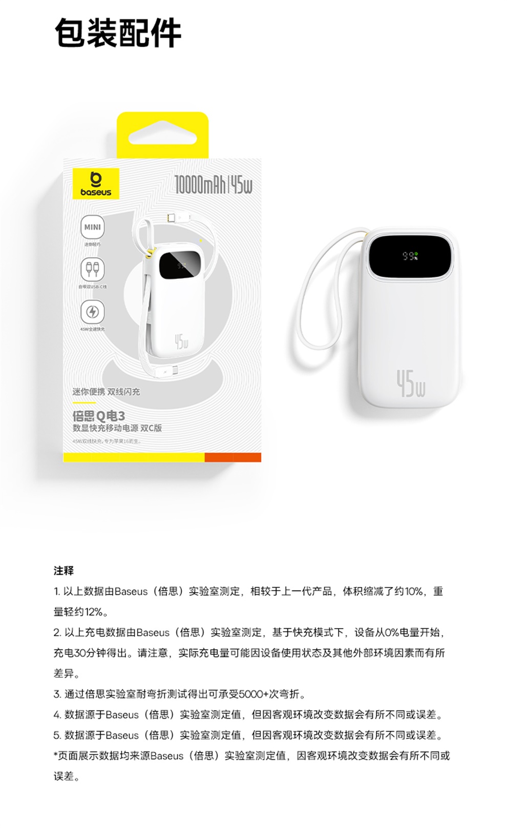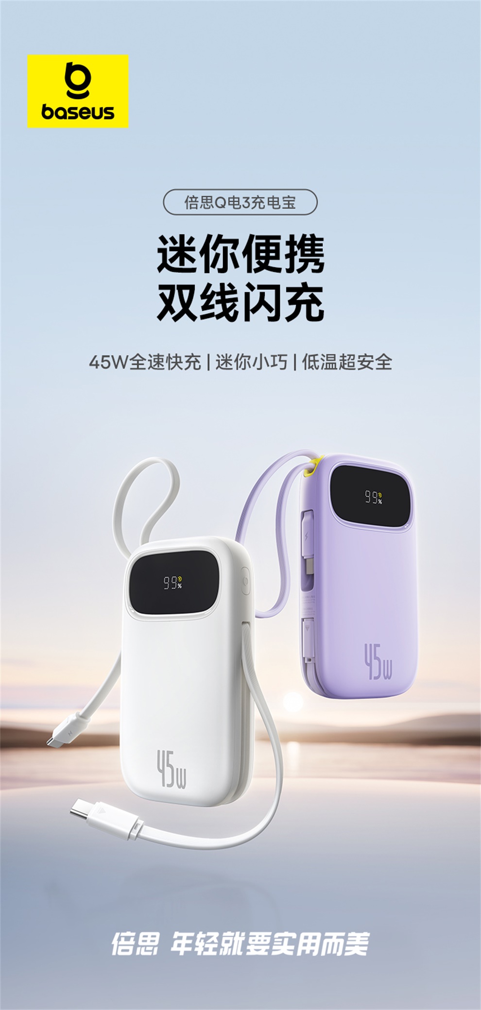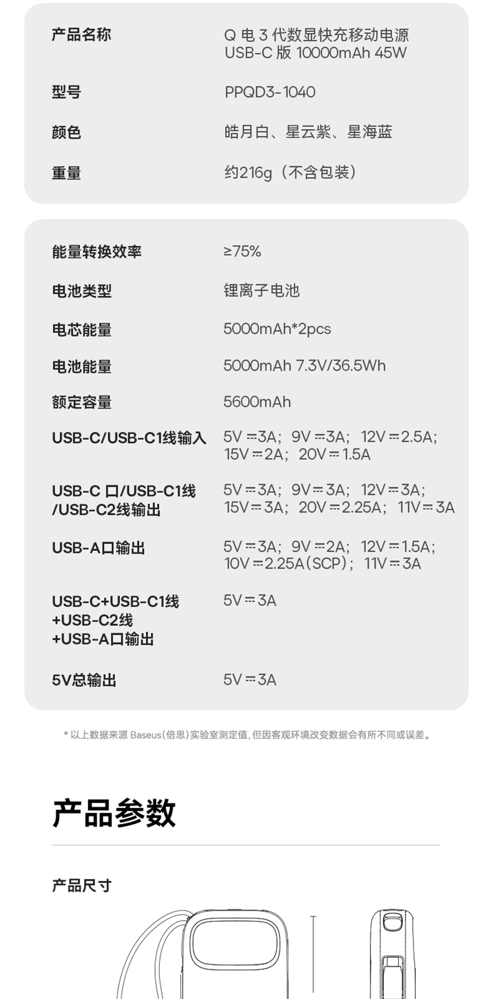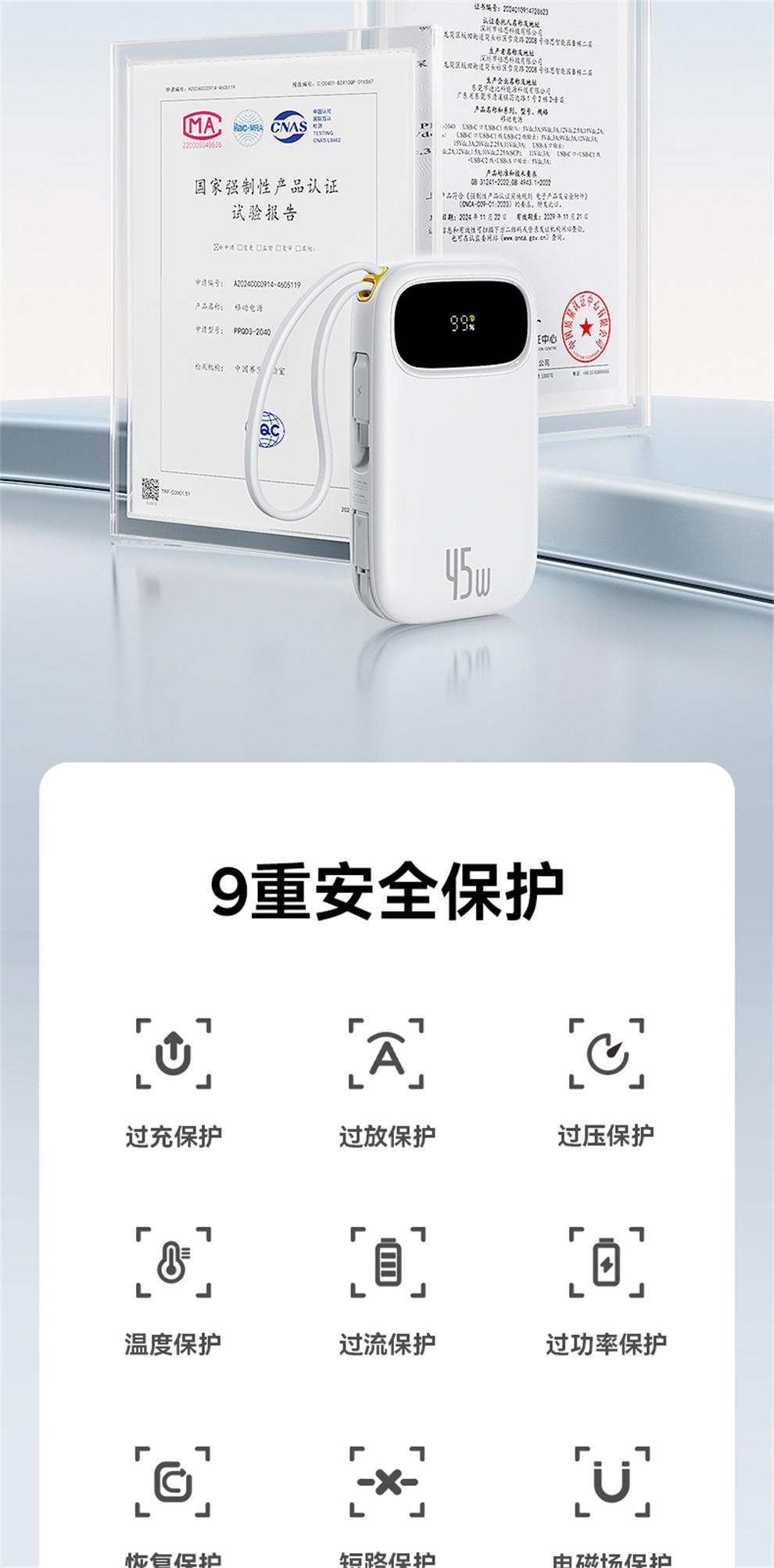 【国家3C认证】倍思 Q电3 数显快充移动电源 双C版 45W