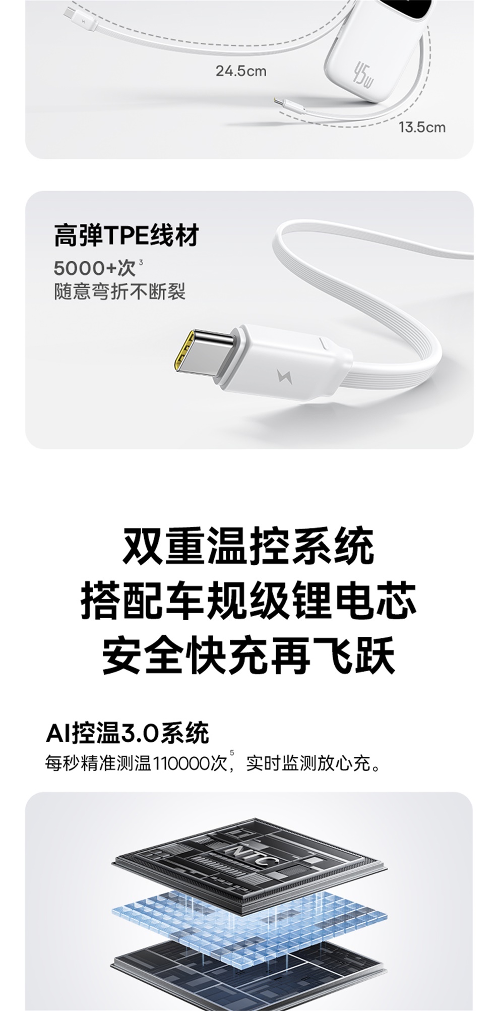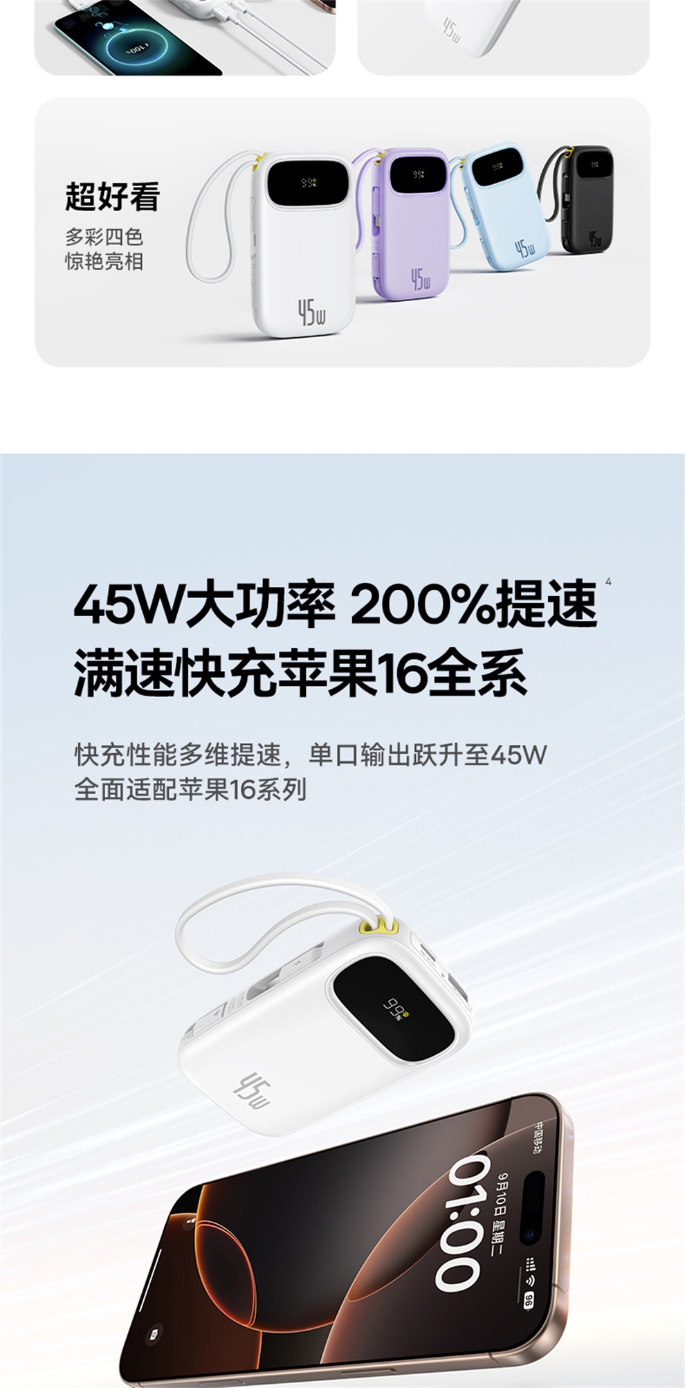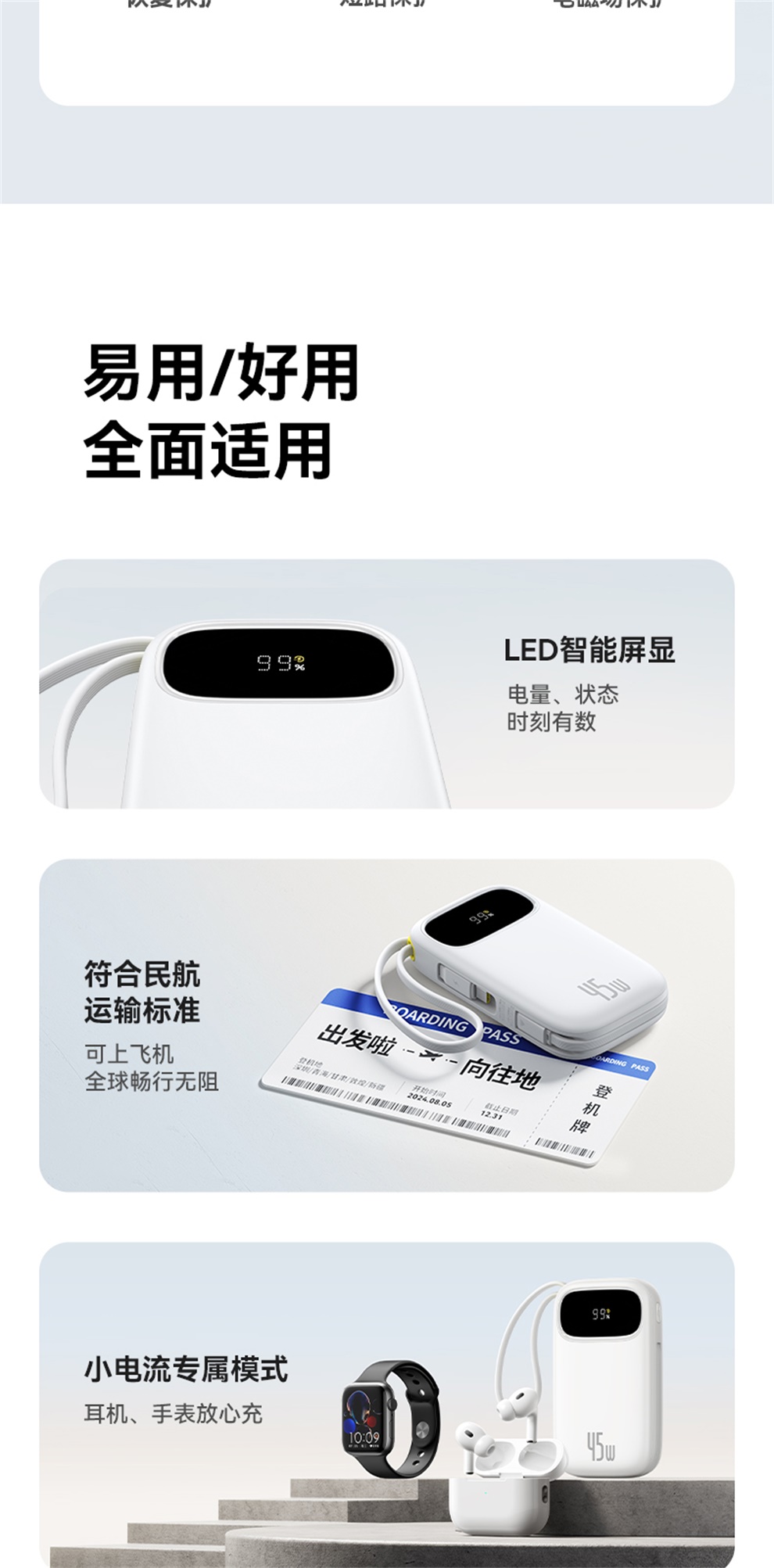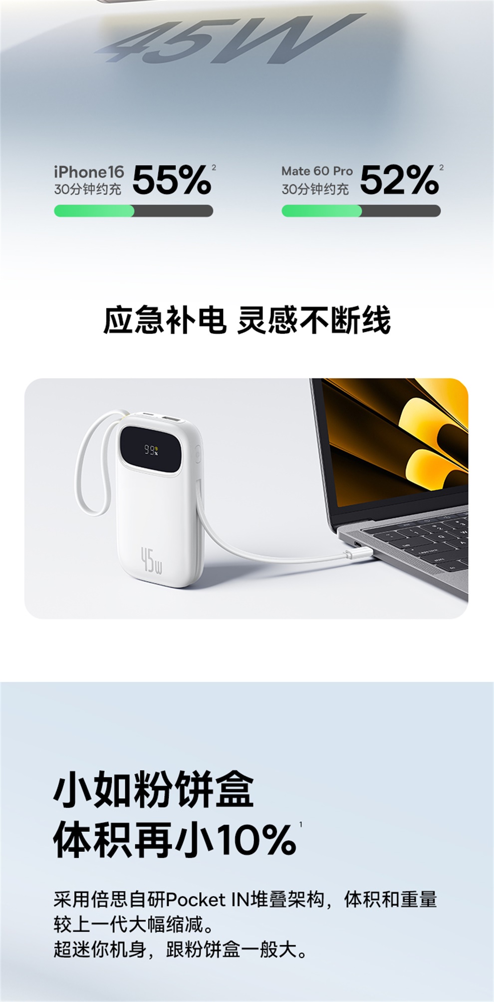 【国家3C认证】倍思 Q电3 数显快充移动电源 双C版 45W