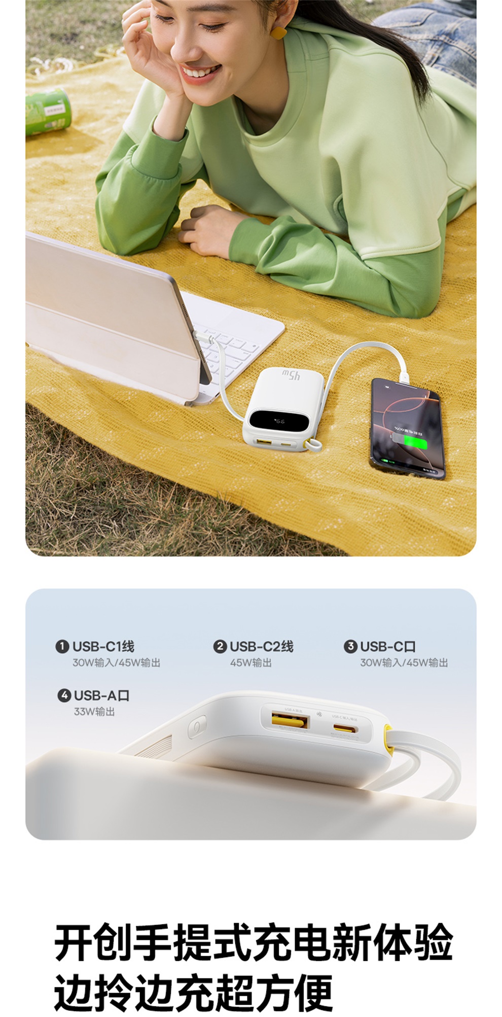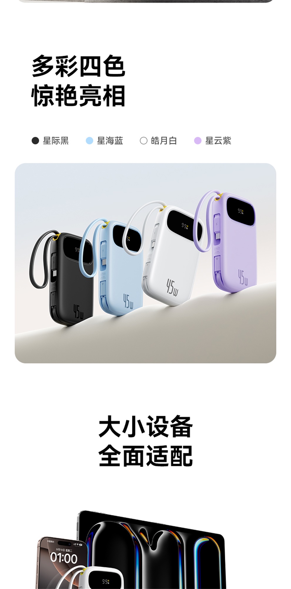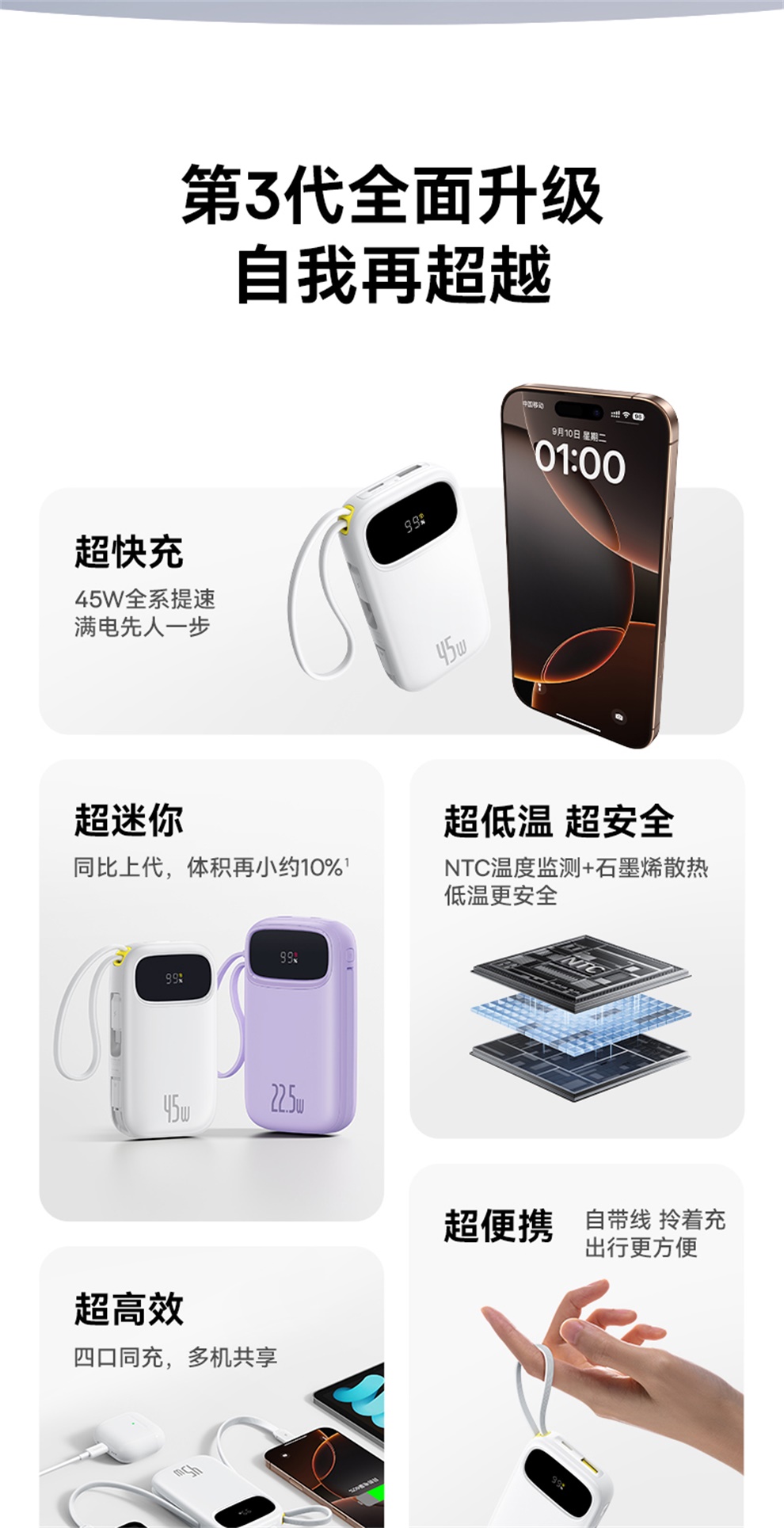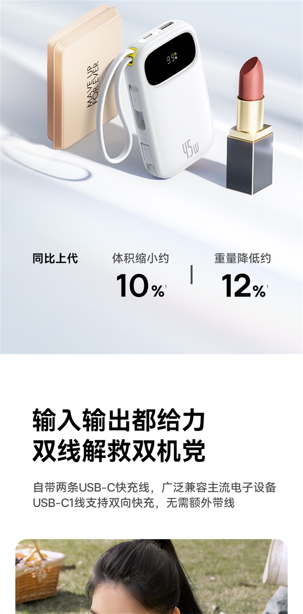 【国家3C认证】倍思 Q电3 数显快充移动电源 双C版 45W