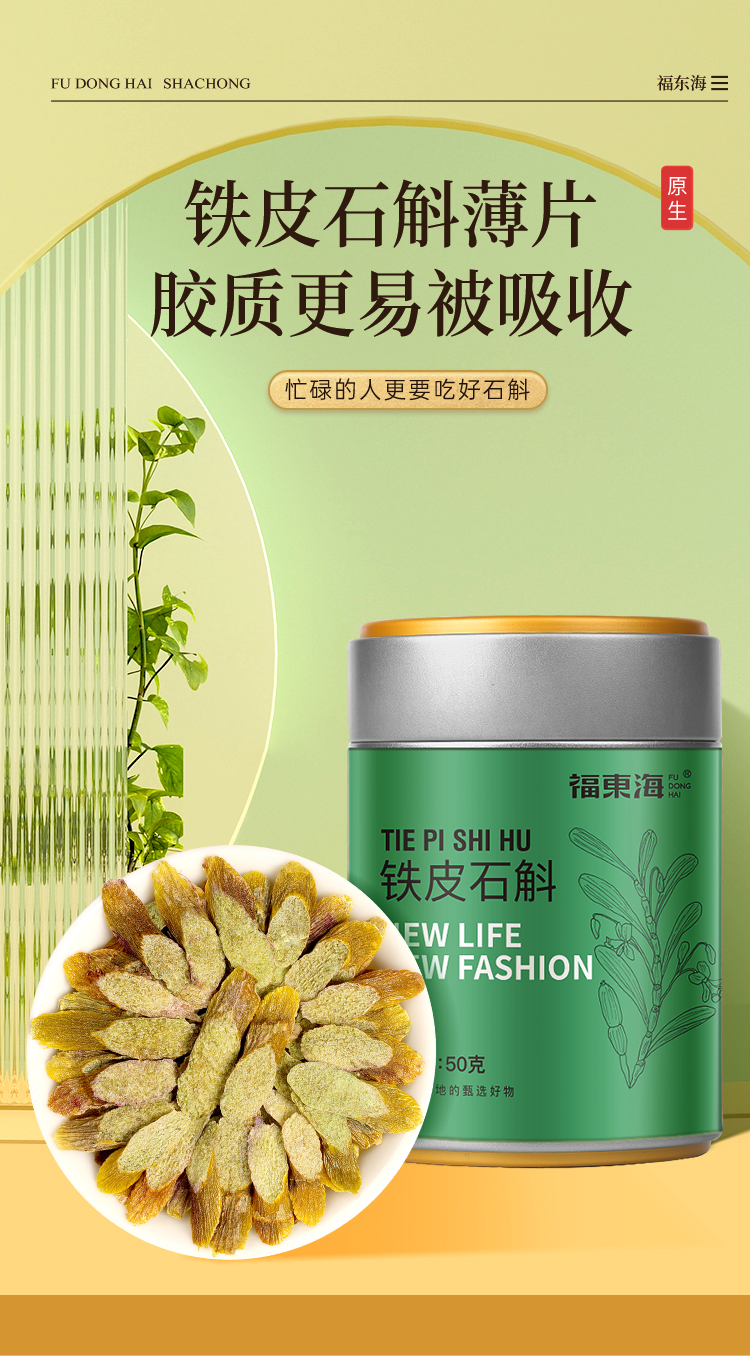 福东海 铁皮石斛50g(斜切) 严选浙江乐清石斛切片胶质饱满 泡水养生茶
