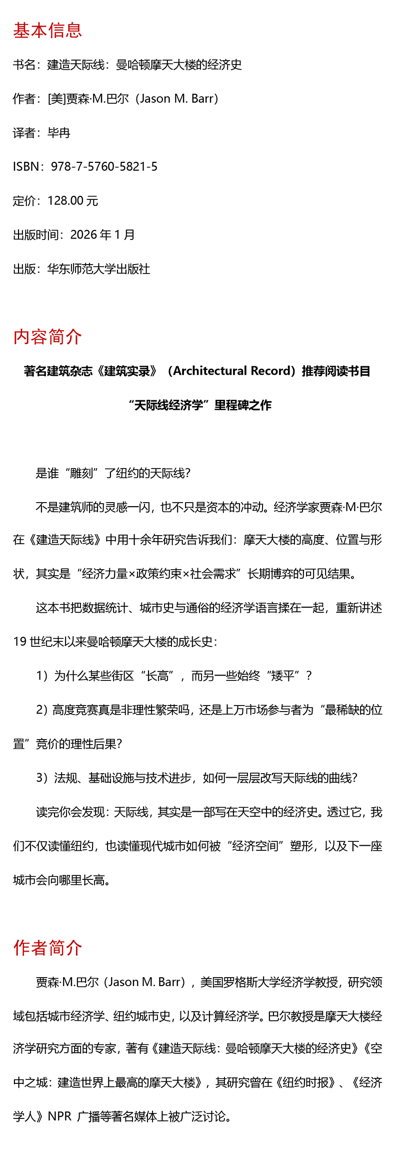 建造天际线 曼哈顿摩天大楼的经济史 著名建筑杂志《建筑实录》推荐阅读书目