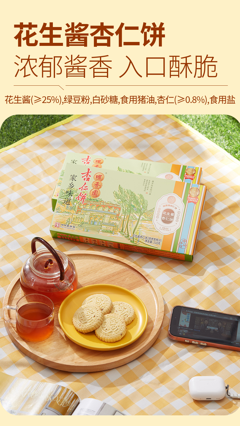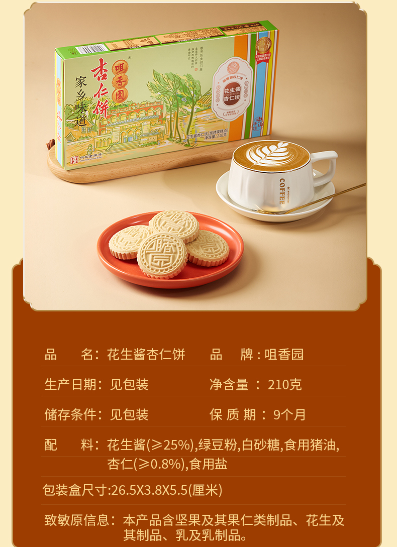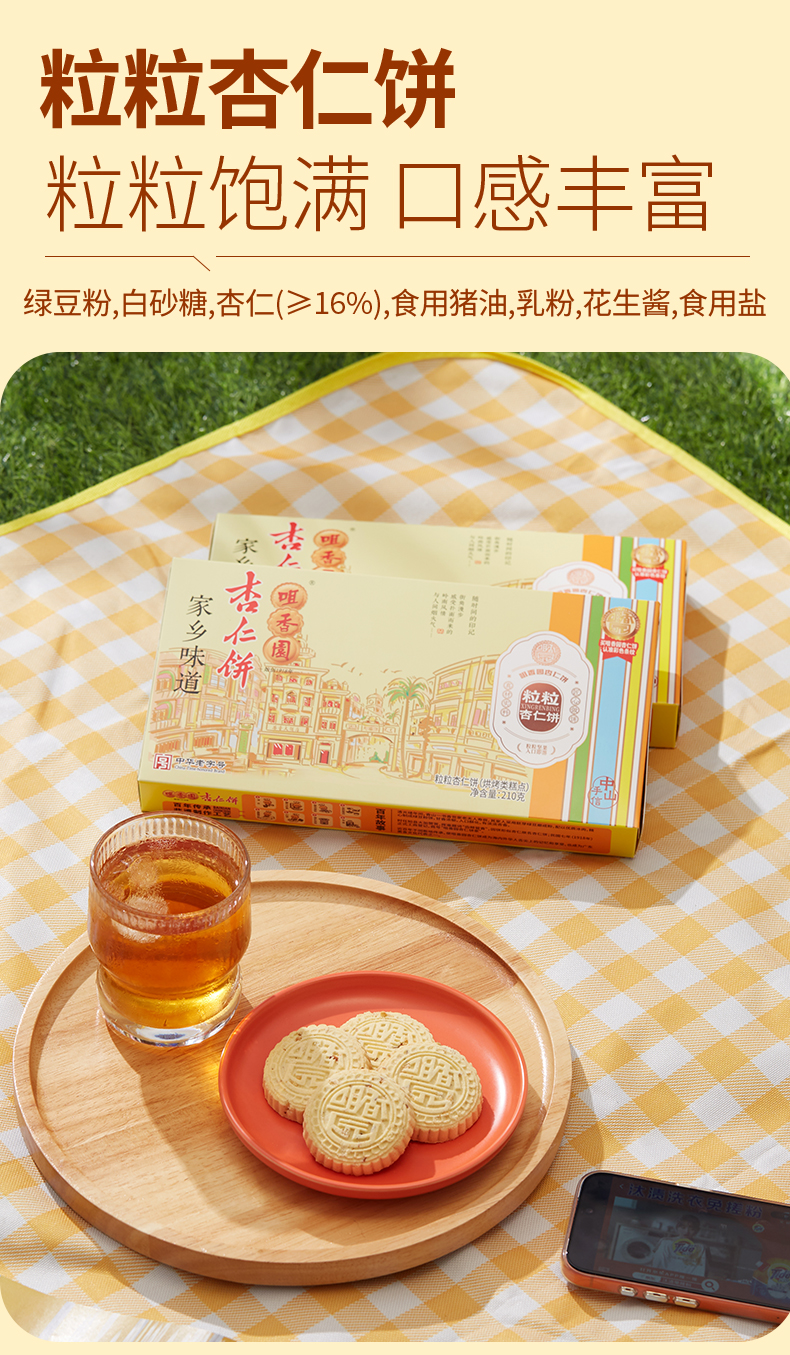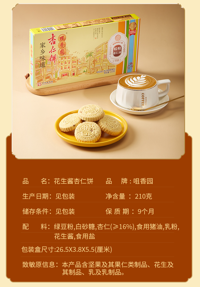 咀香园纯正/花生酱/粒粒/杏仁饼210g广东特产杏仁饼传统绿豆糕点正宗家乡口味